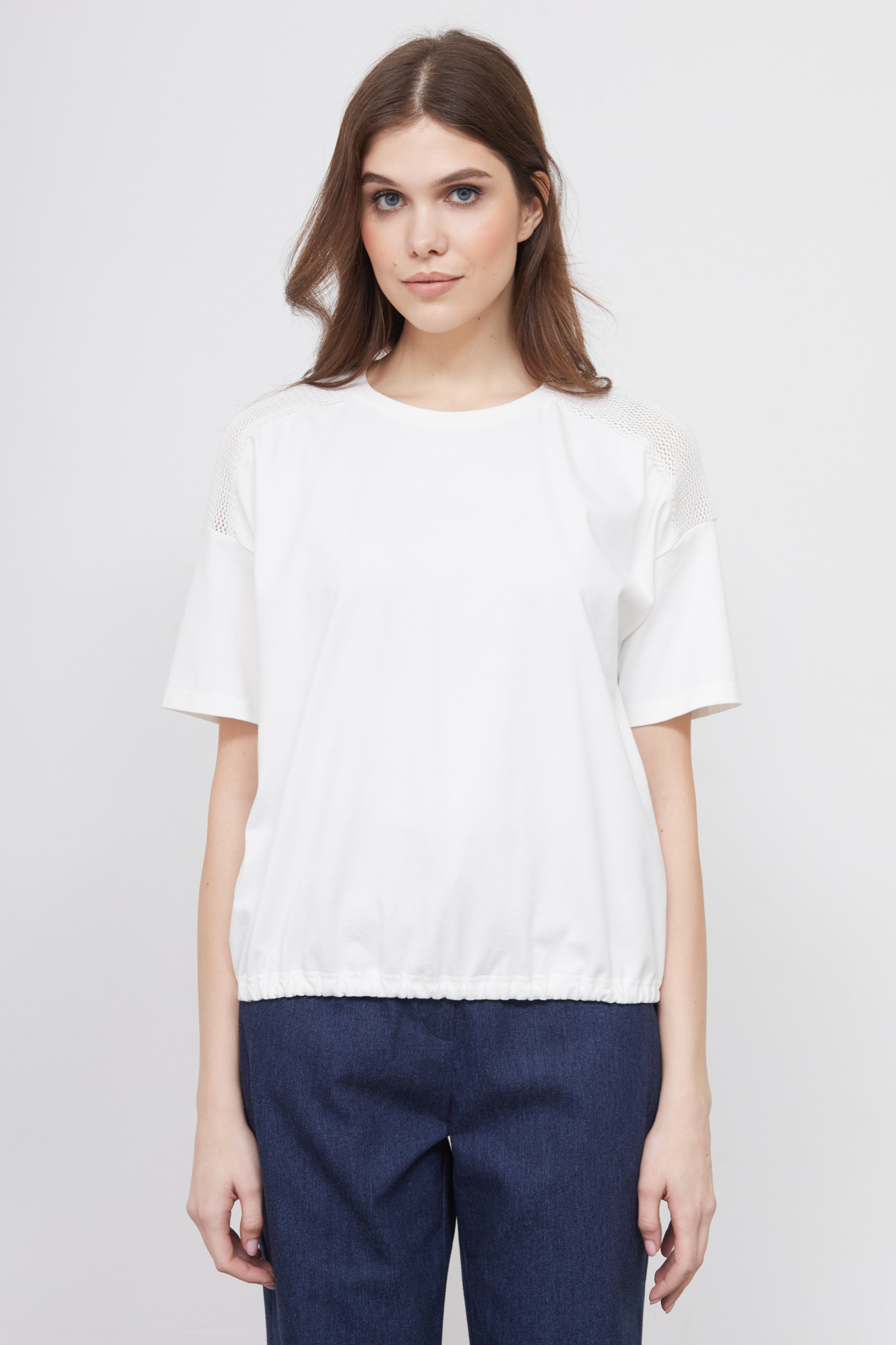 Футболка из мягкого хлопкового трикотажа с вязаными вставками на плечах.