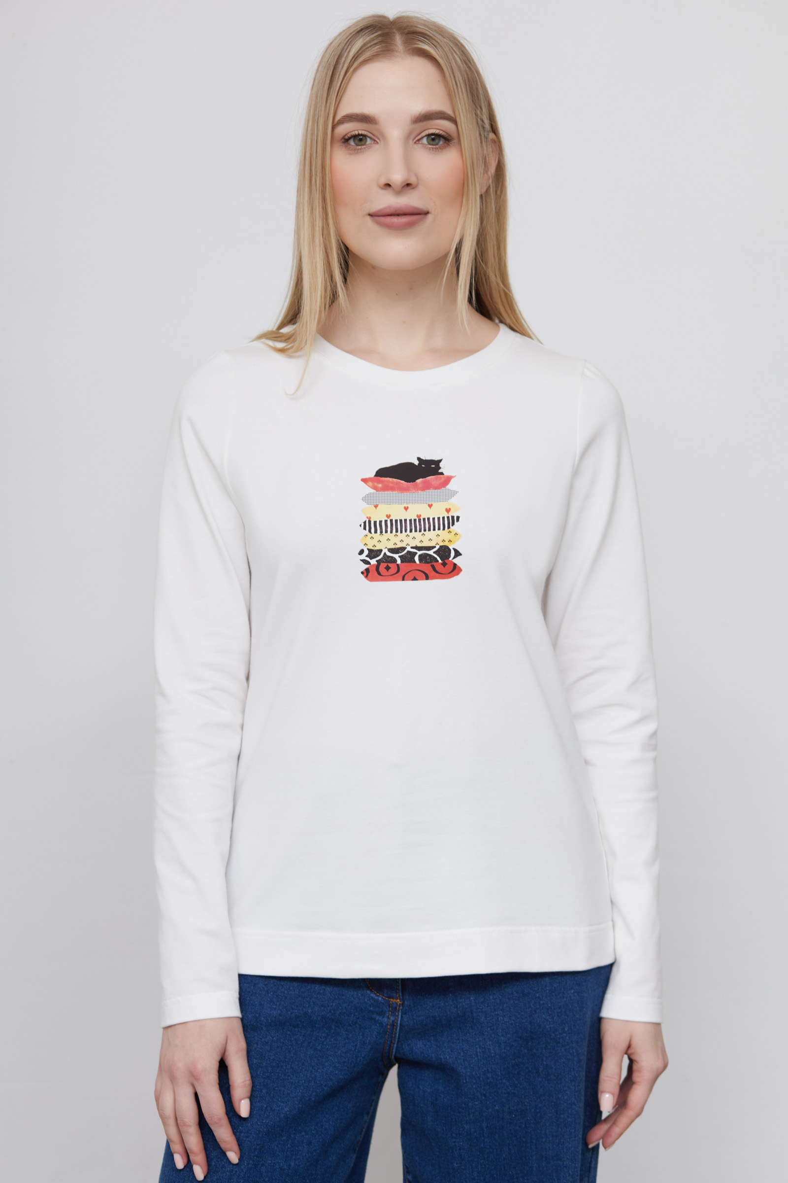 Лонгслив из мягкого вискозного трикотажа с авторским печатным принтом.