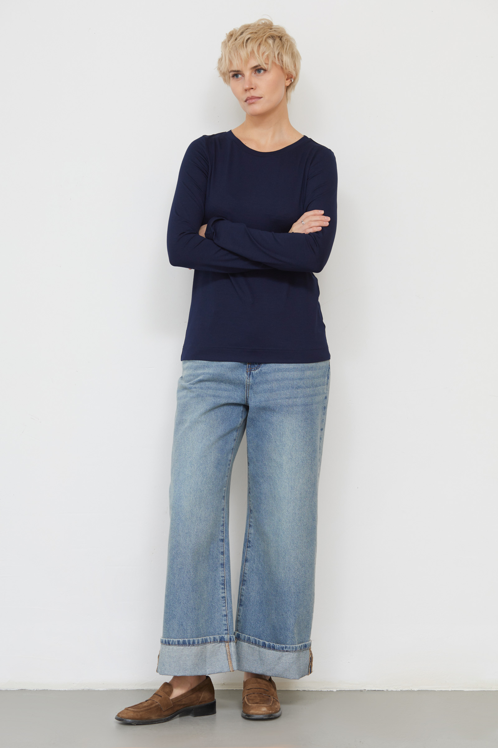Базовый лонгслив из мягкого вискозного трикотажа.