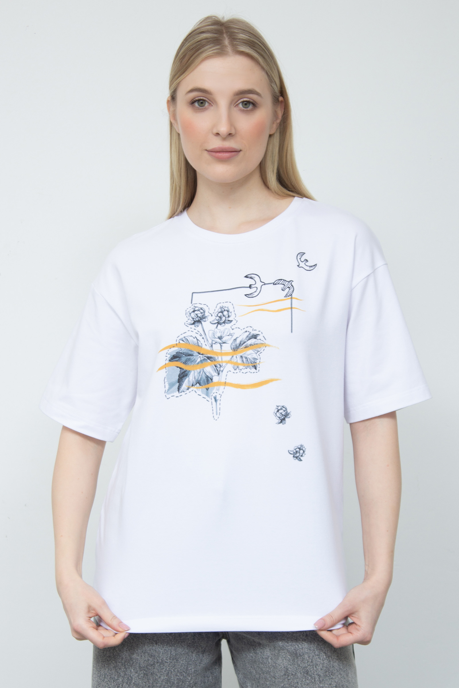 Футболка oversize из мягкого хлопкового трикотажа с печатным принтом и вышивкой.