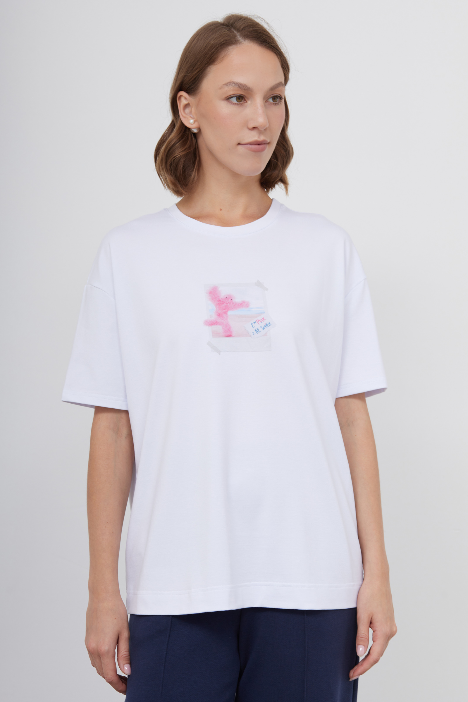 Футболка oversize из плотного вискозного трикотажа с печатным принтом.