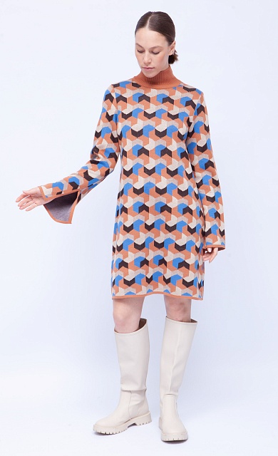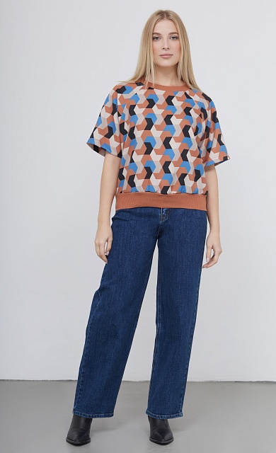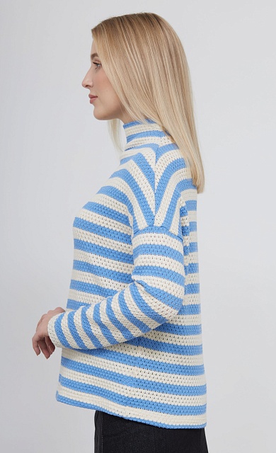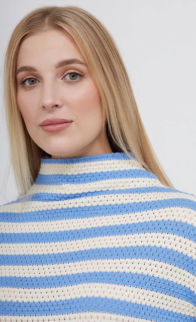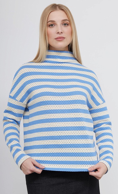 Джемпер из мягкого фактурного трикотажа в полоску с цельнокроеным воротником.