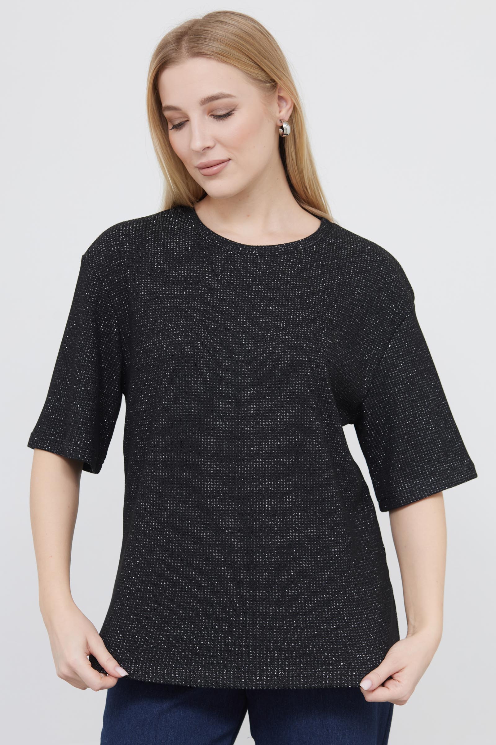 Футболка oversize из фактурного трикотажа с люрексом.