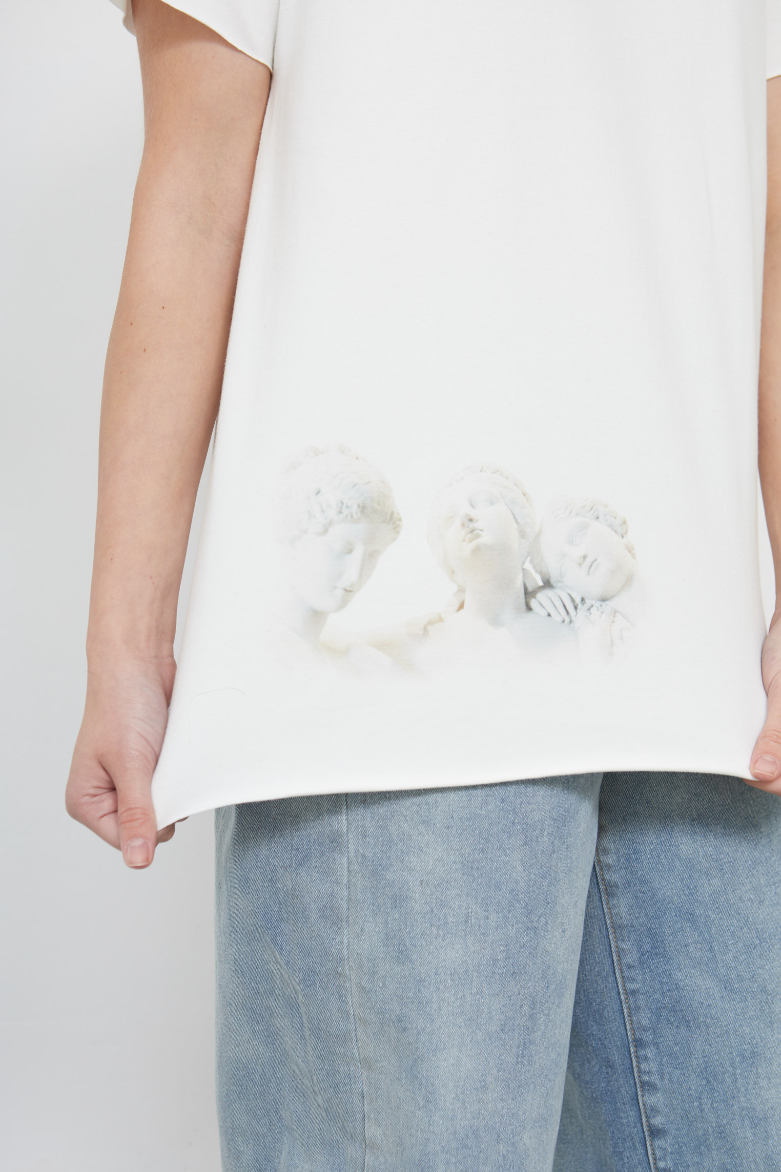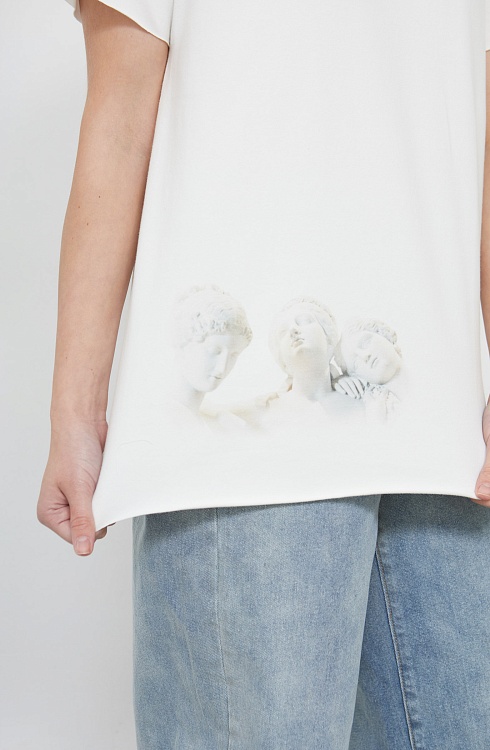 Футболка oversize из мягкого хлопкового трикотажа с необработанными краями и печатным принтом.
