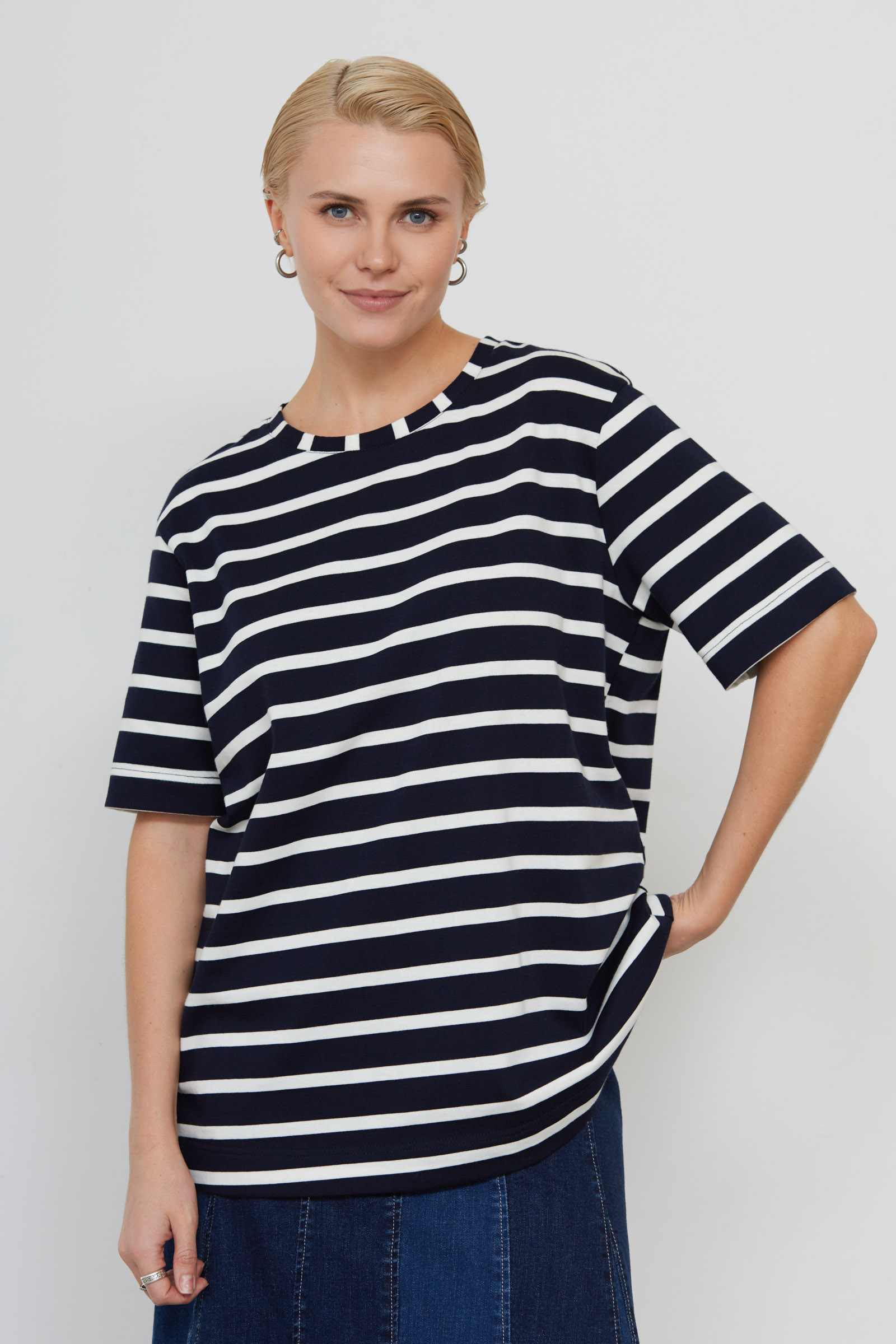 Футболка oversize из мягкого хлопкового трикотажа в полоску.