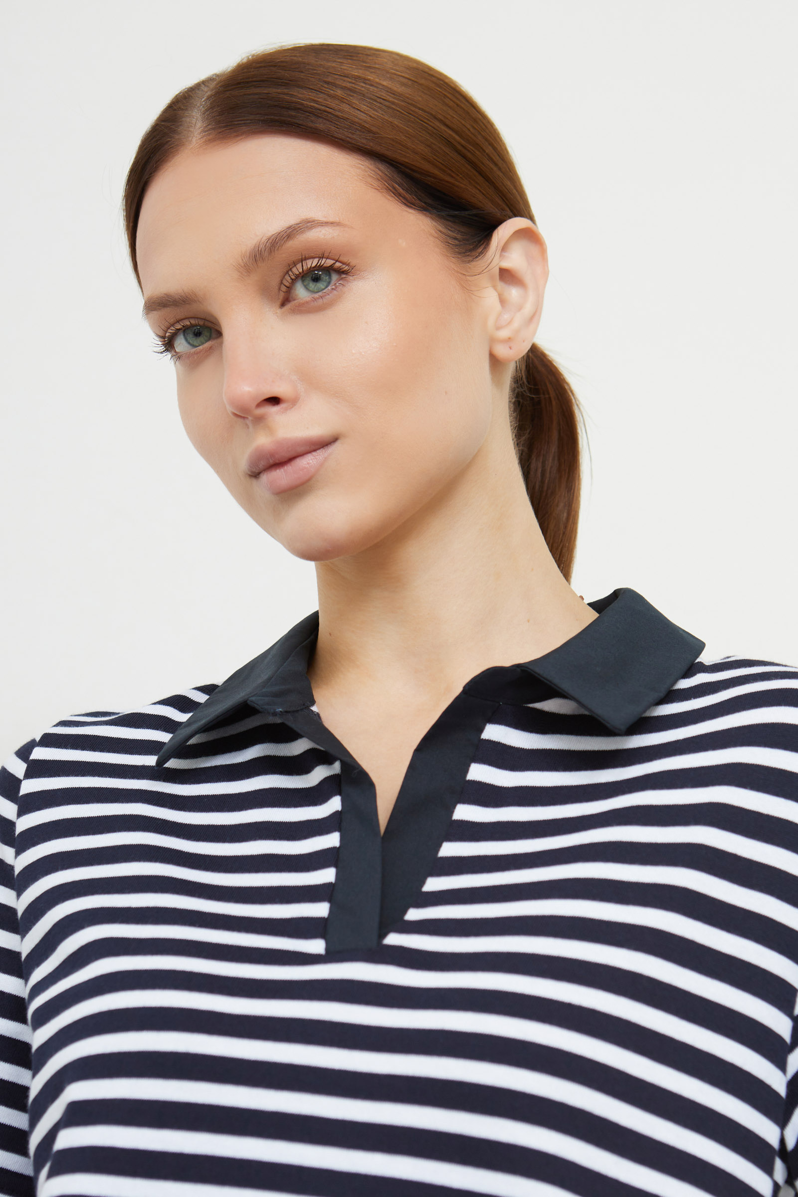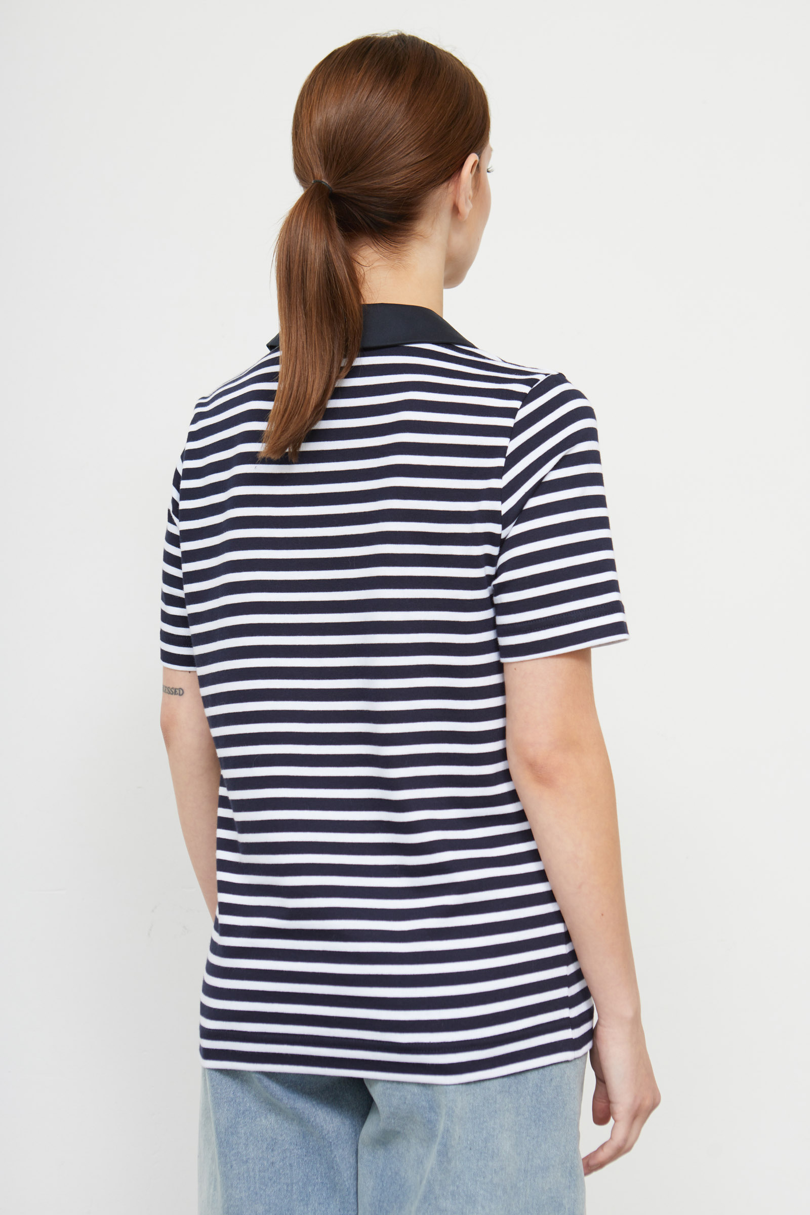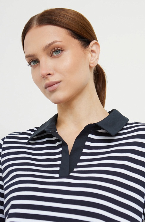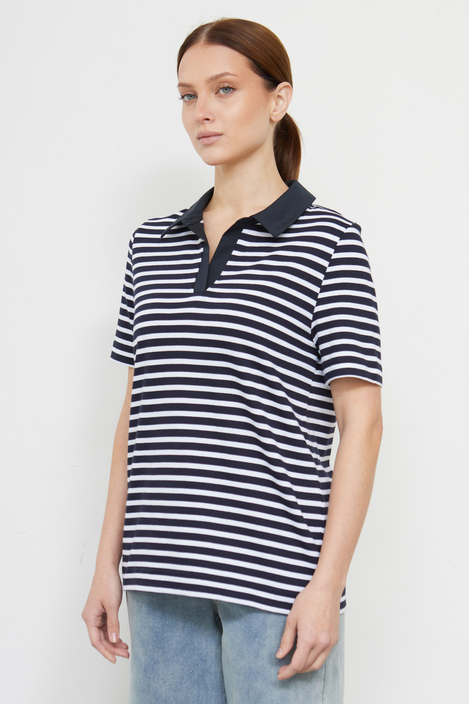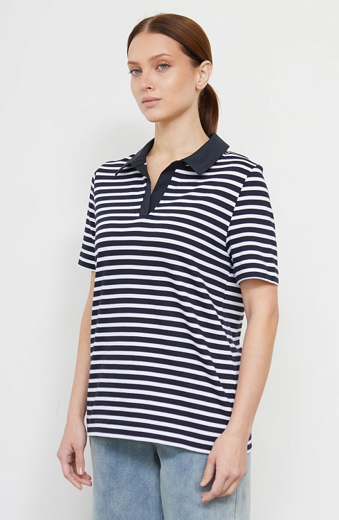 Футболка поло из мягкого хлопкового трикотажа в полоску с контрастным воротником.