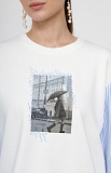 Комбинированный свитшот из футера с рукавами буфами из хлопка в полоску, печатным принтом с вышивкой и завязками по низу.