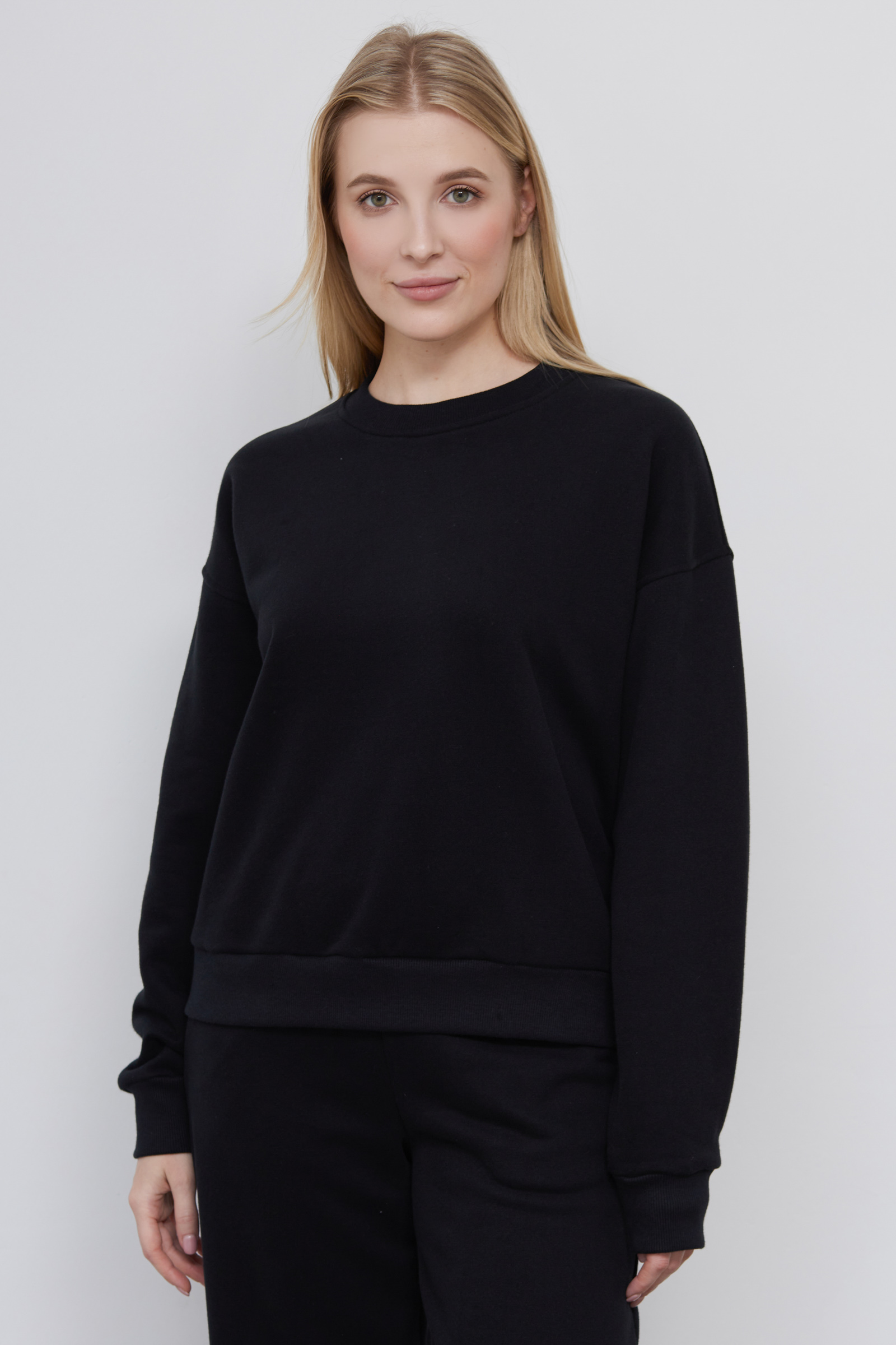 Свитшот oversize из мягкого футера с бархатистой текстурой.