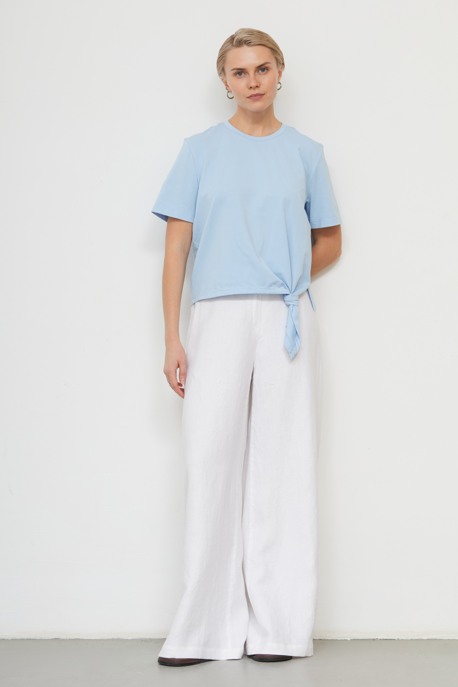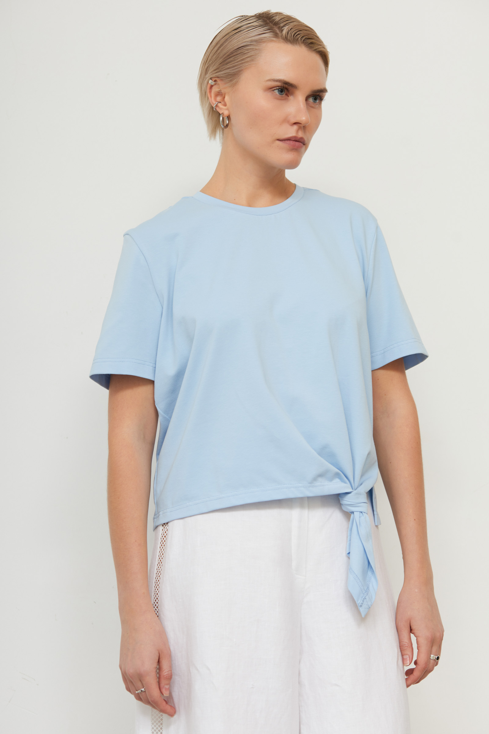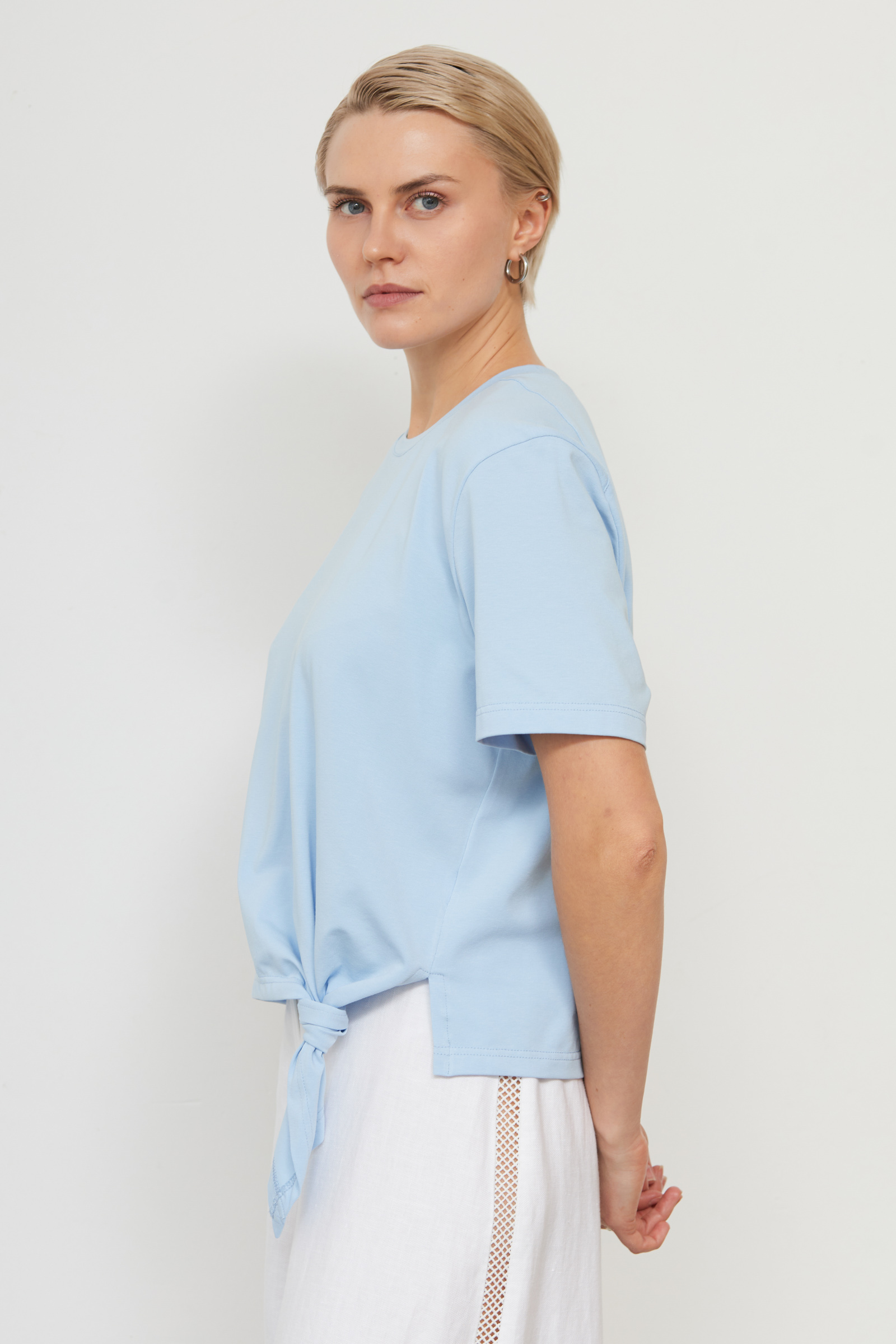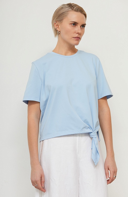 Укороченная футболка из мягкого хлопкового трикотажа с декоративным узлом по низу.
