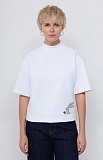 Футболка oversize из плотного хлопка с высоким воротником и печатным принтом.