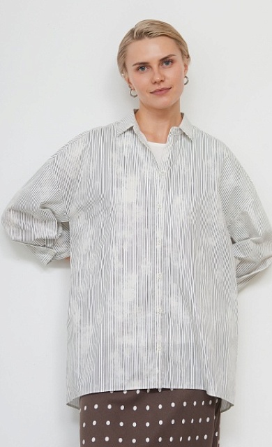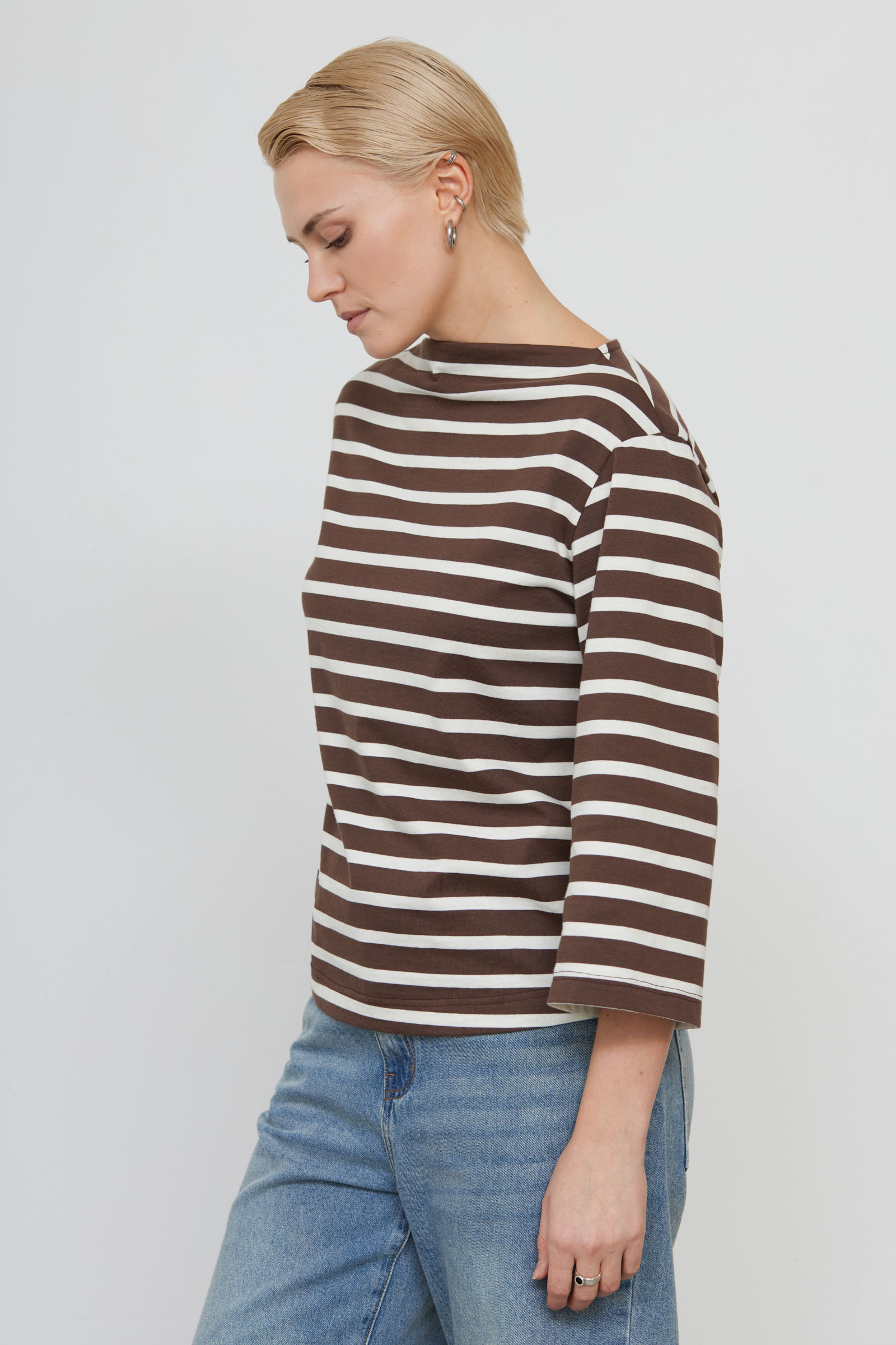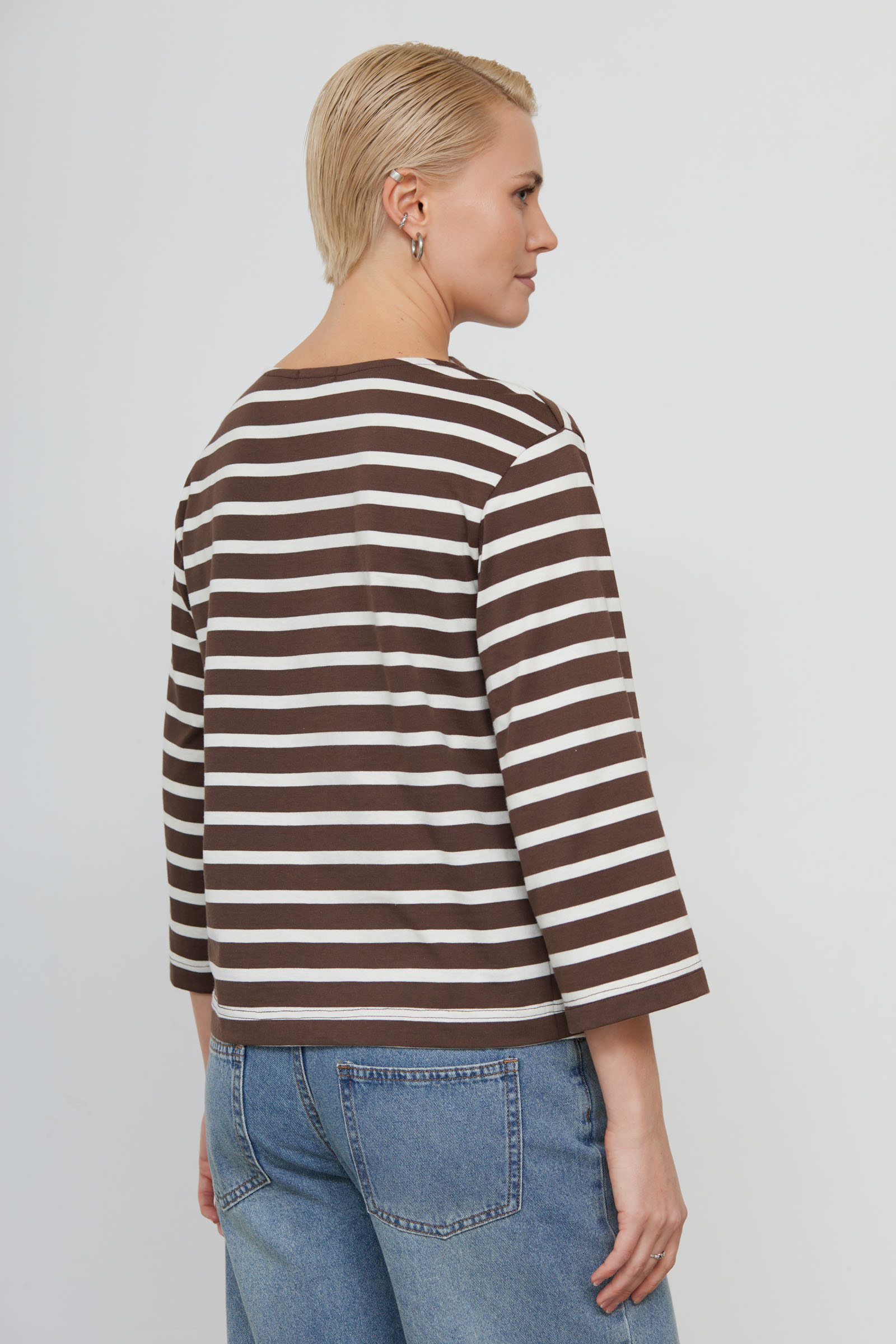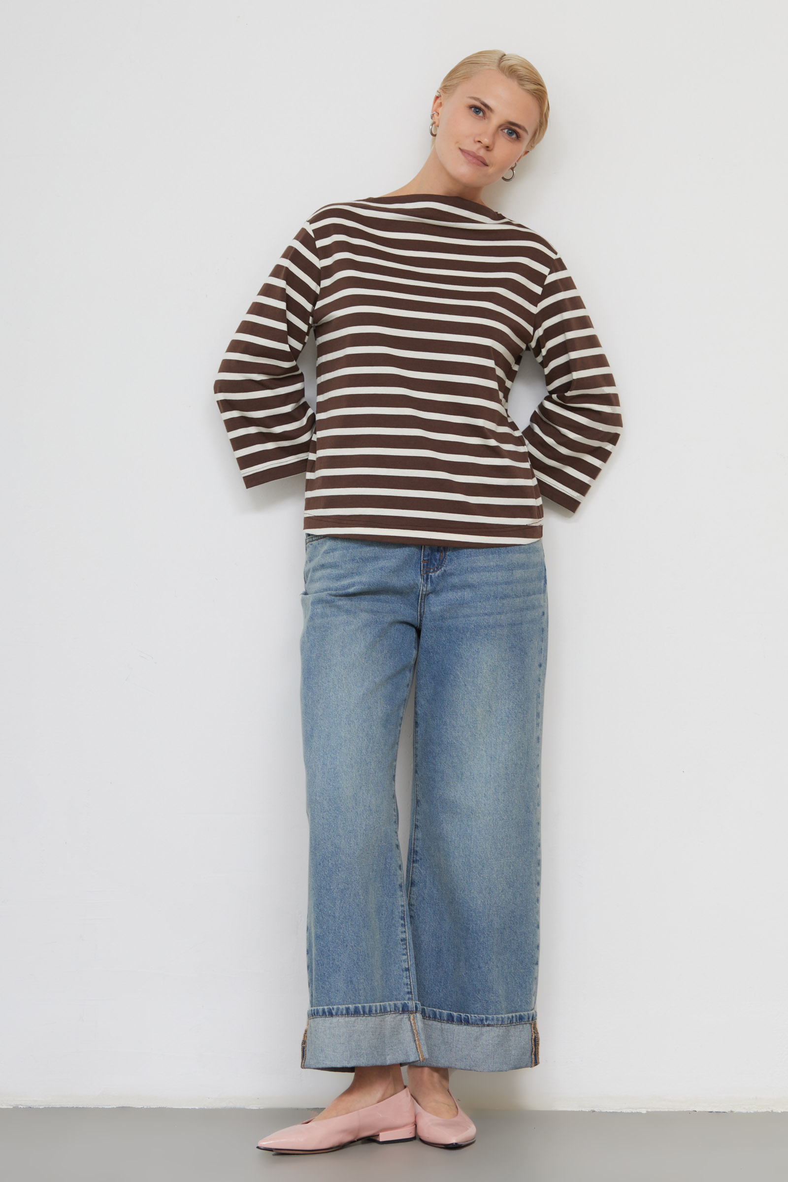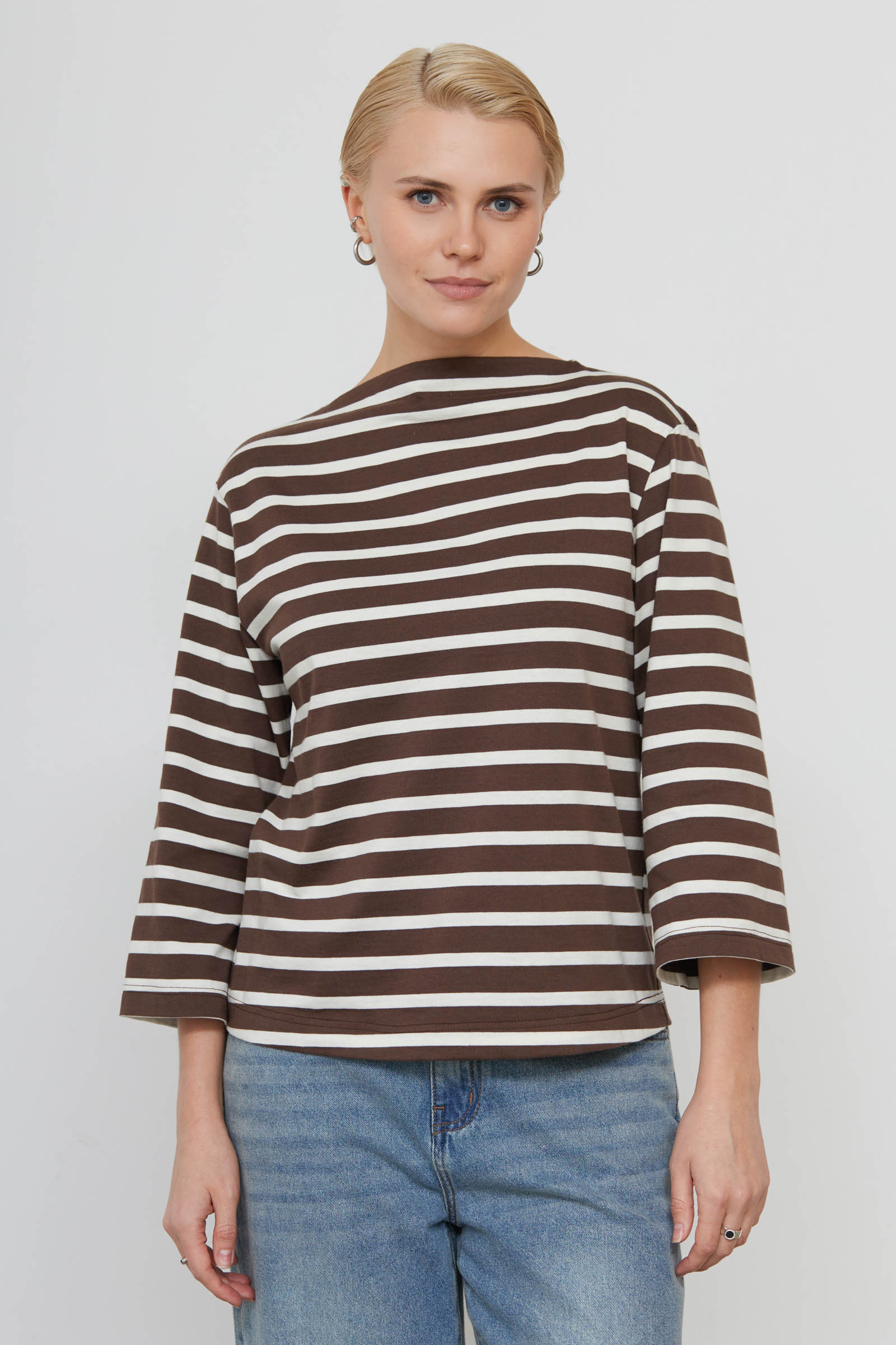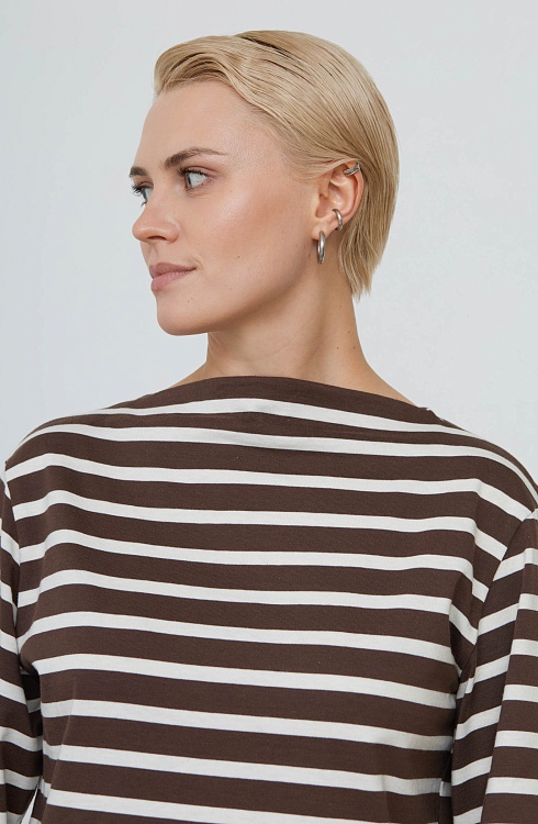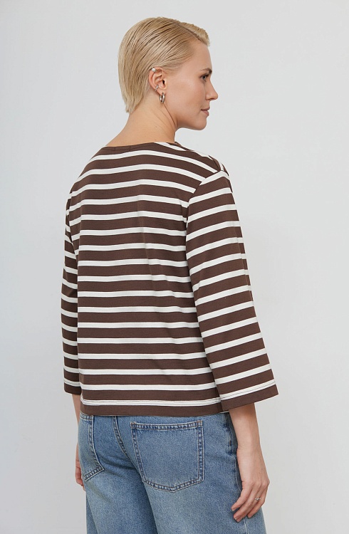 Лонгслив из мягкого хлопкового трикотажа в полоску с широкими рукавами.