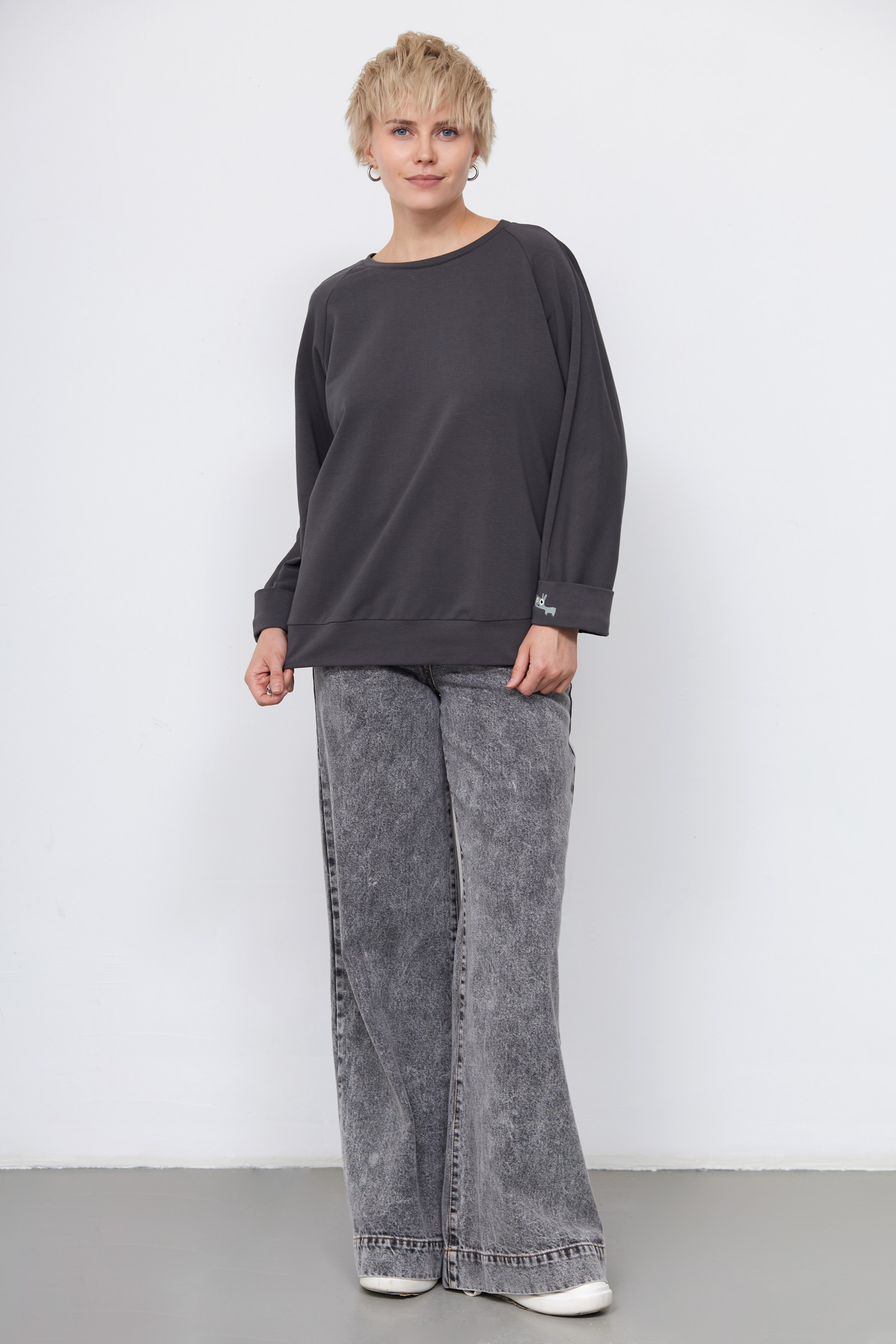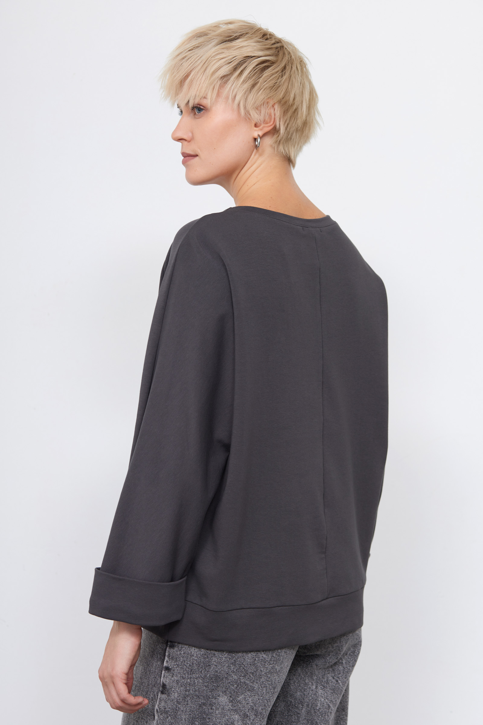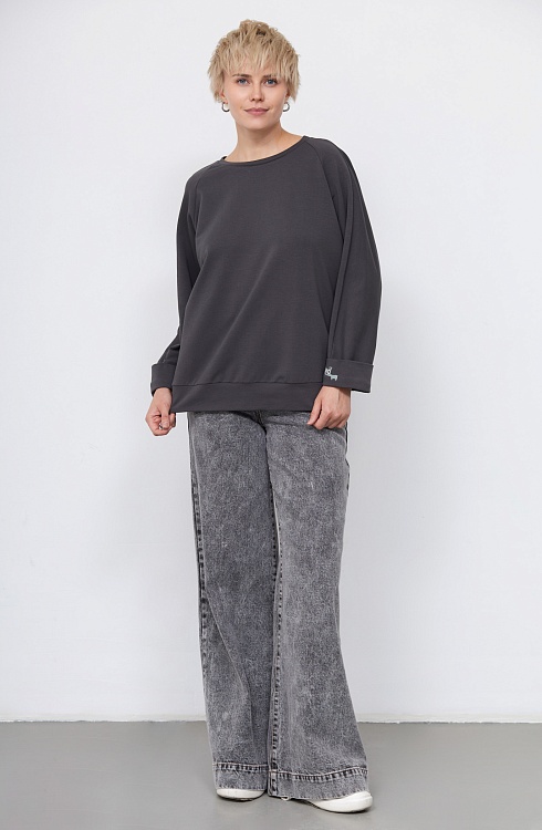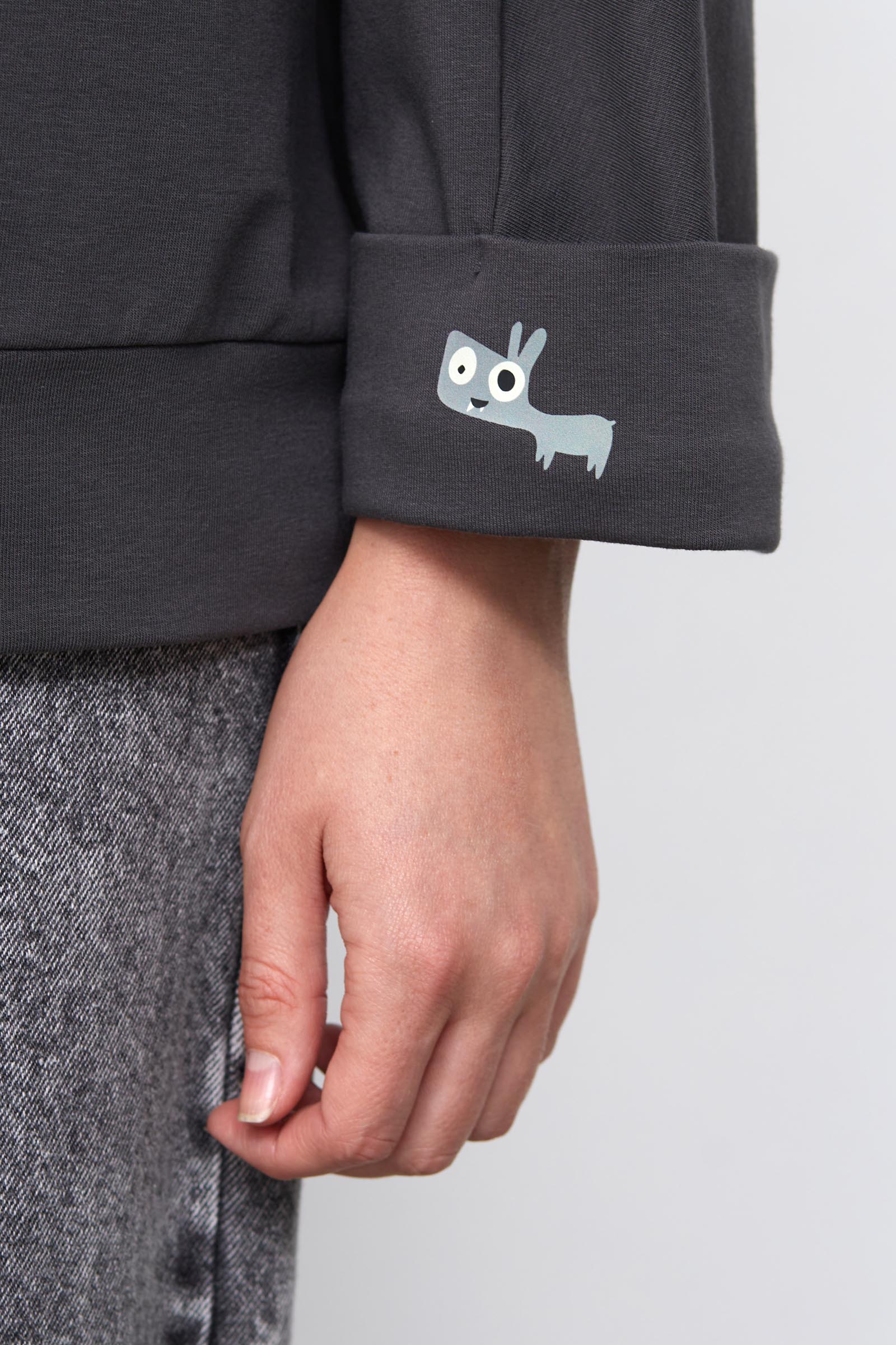 Свитшот oversize из тонкого футера с печатным принтом на манжете.