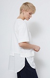 Комбинированная футболка оверсайз из плотного хлопкового трикотажа и текстиля с декоративной сборкой.