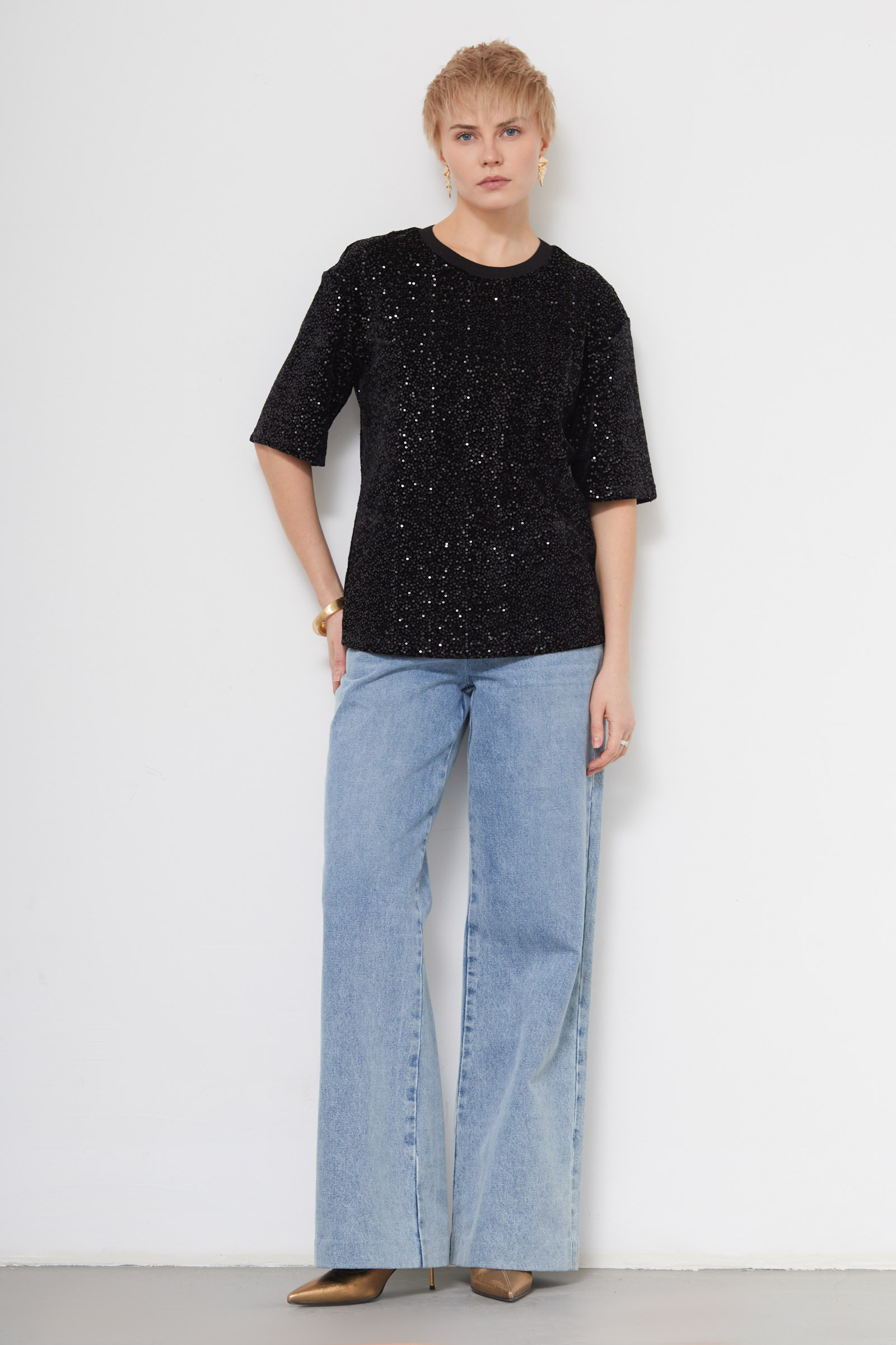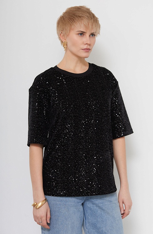 Футболка из бархата с пайетками