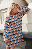 Короткое платье жаккардовой вязки с геометрическим рисунком.
