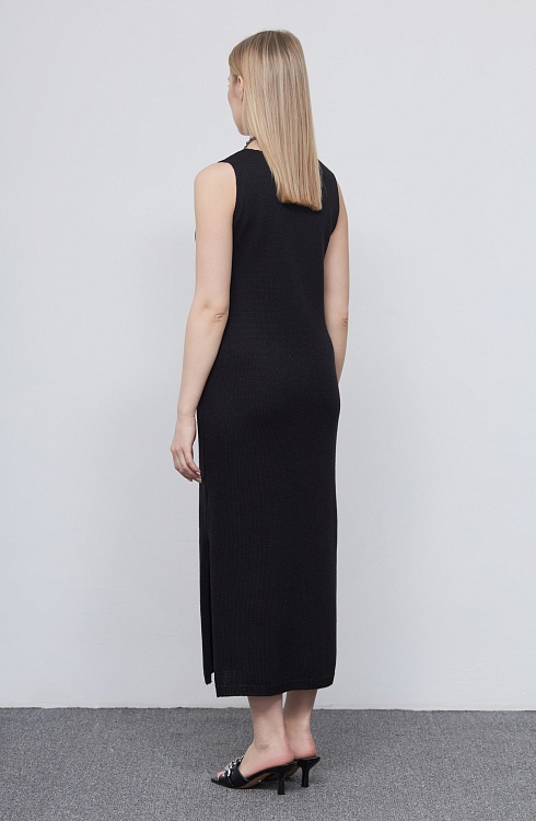 Платье без рукавов из мягкого вязаного трикотажа с люрексом.