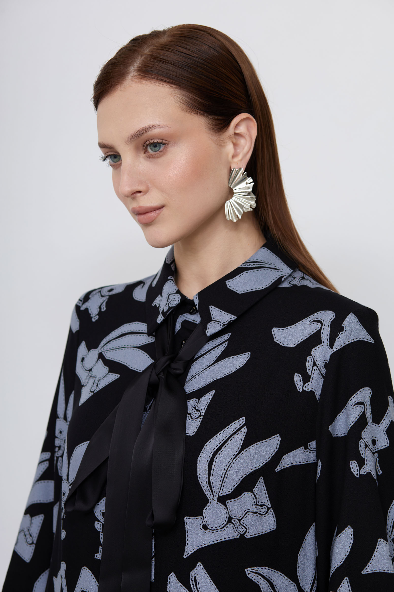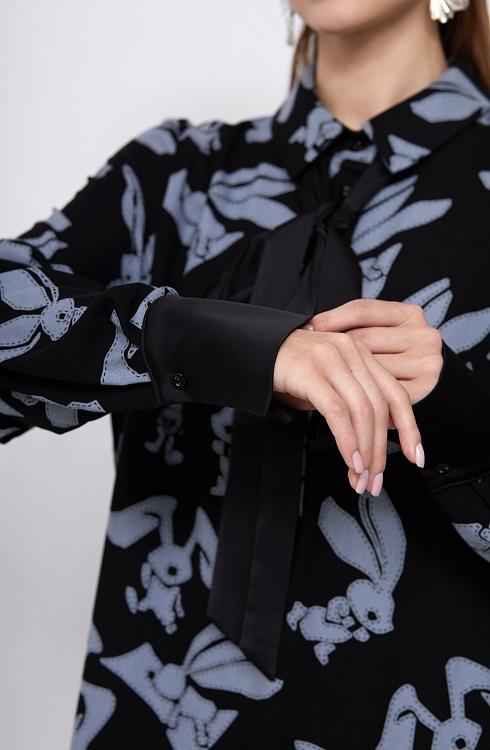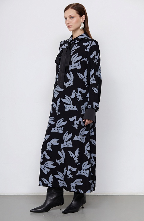 Длинное платье из креповой вискозы с фантазийным принтом и съемным атласным галстуком.