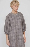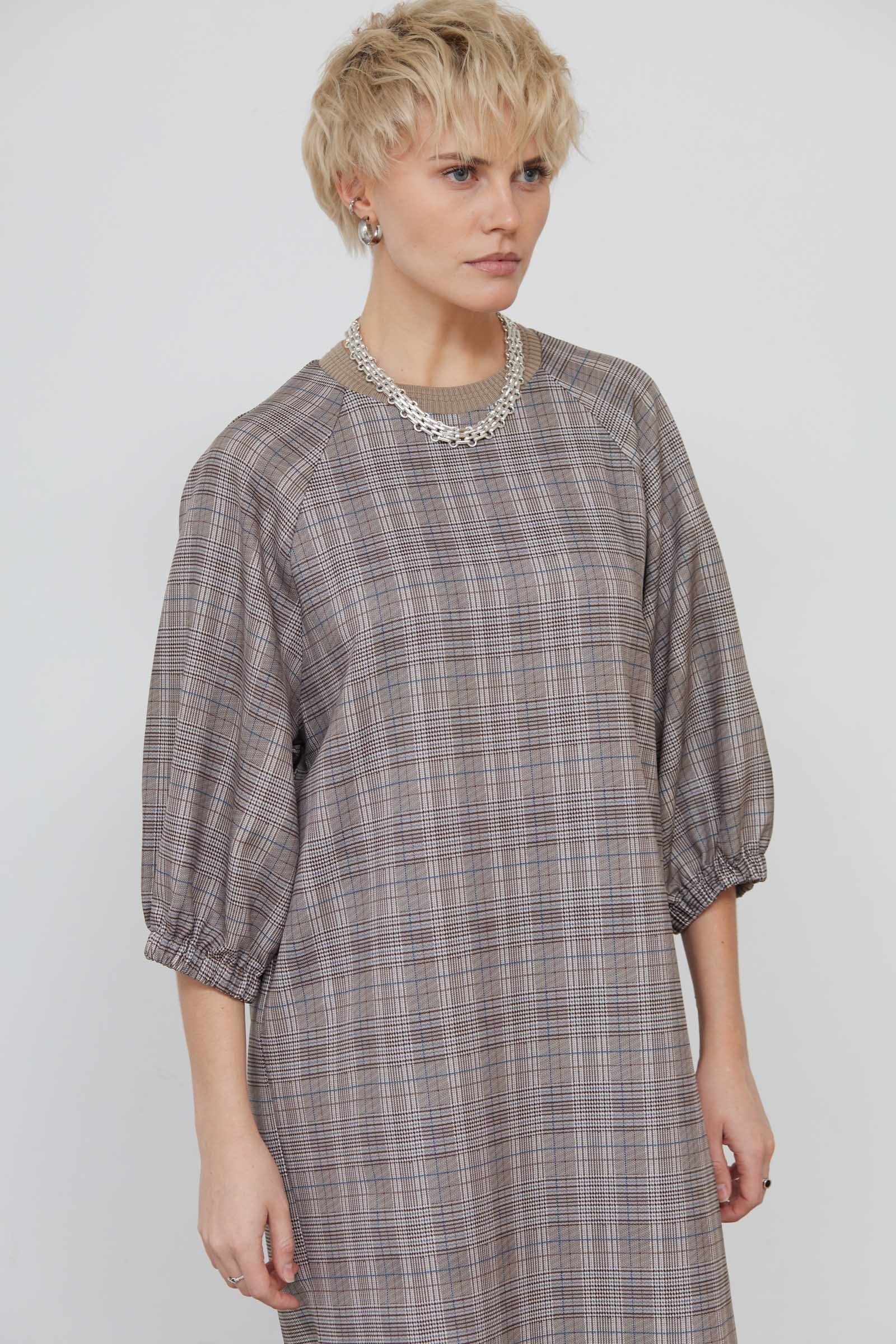Платье oversize в клетку с объемным рукавами.