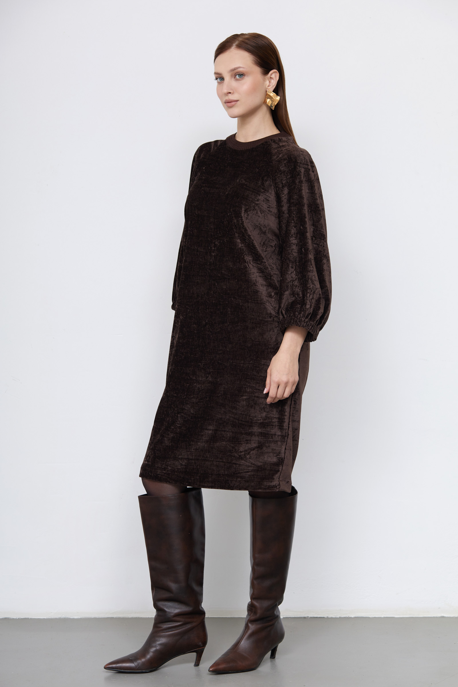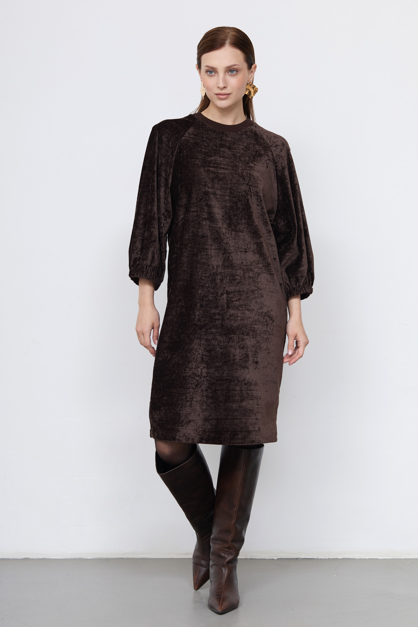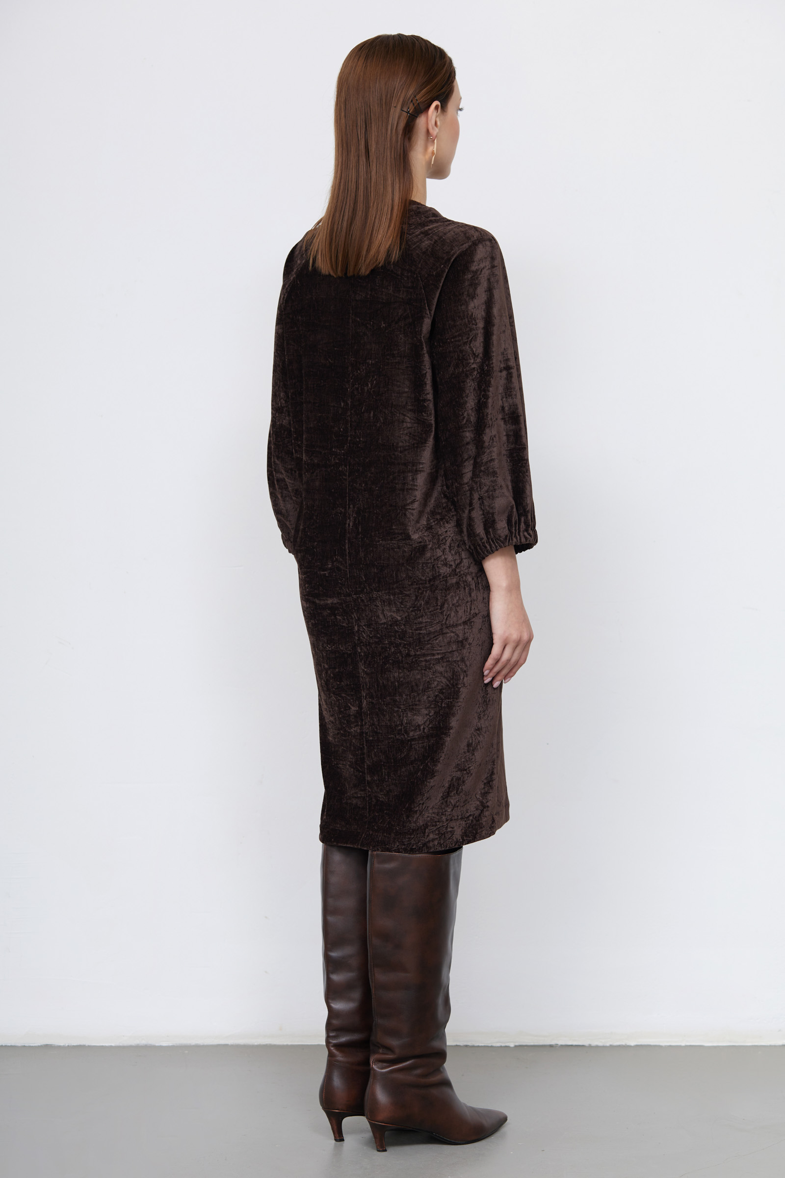 Платье oversize из бархата с жатым эффектом.