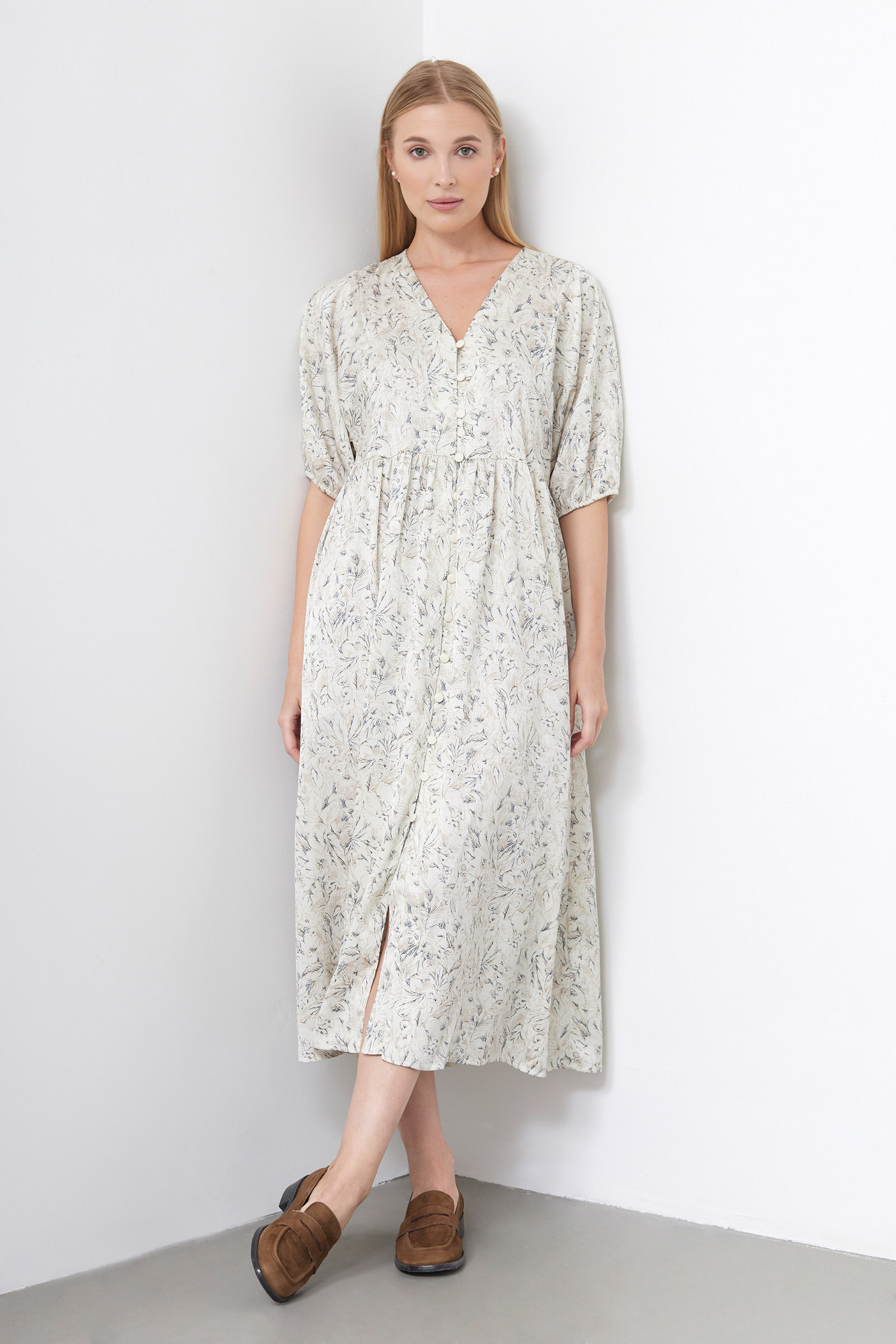 Платье из шифона на пуговицах с цветочным принтом и рукавом летучая мышь.