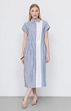 Платье миди изо льна и хлопка с контрастными полосками и супатной застежкой.