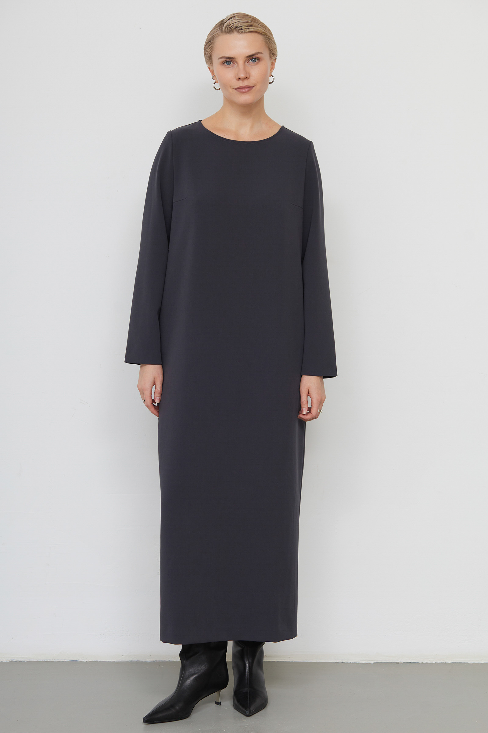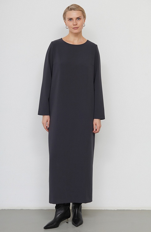 Платье oversize из плотной поливискозы с длинными рукавами.