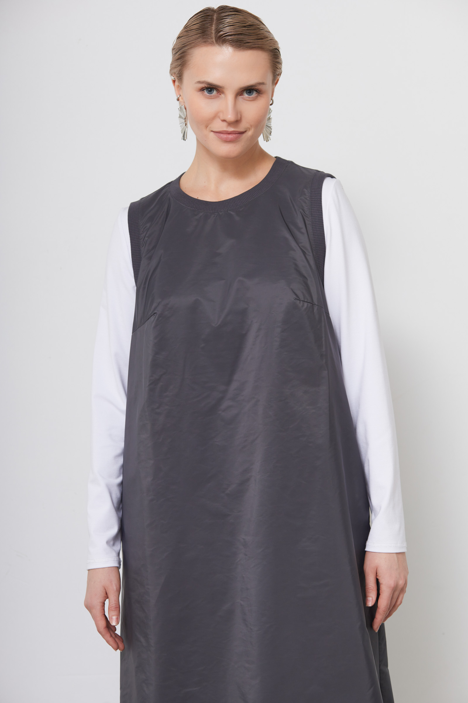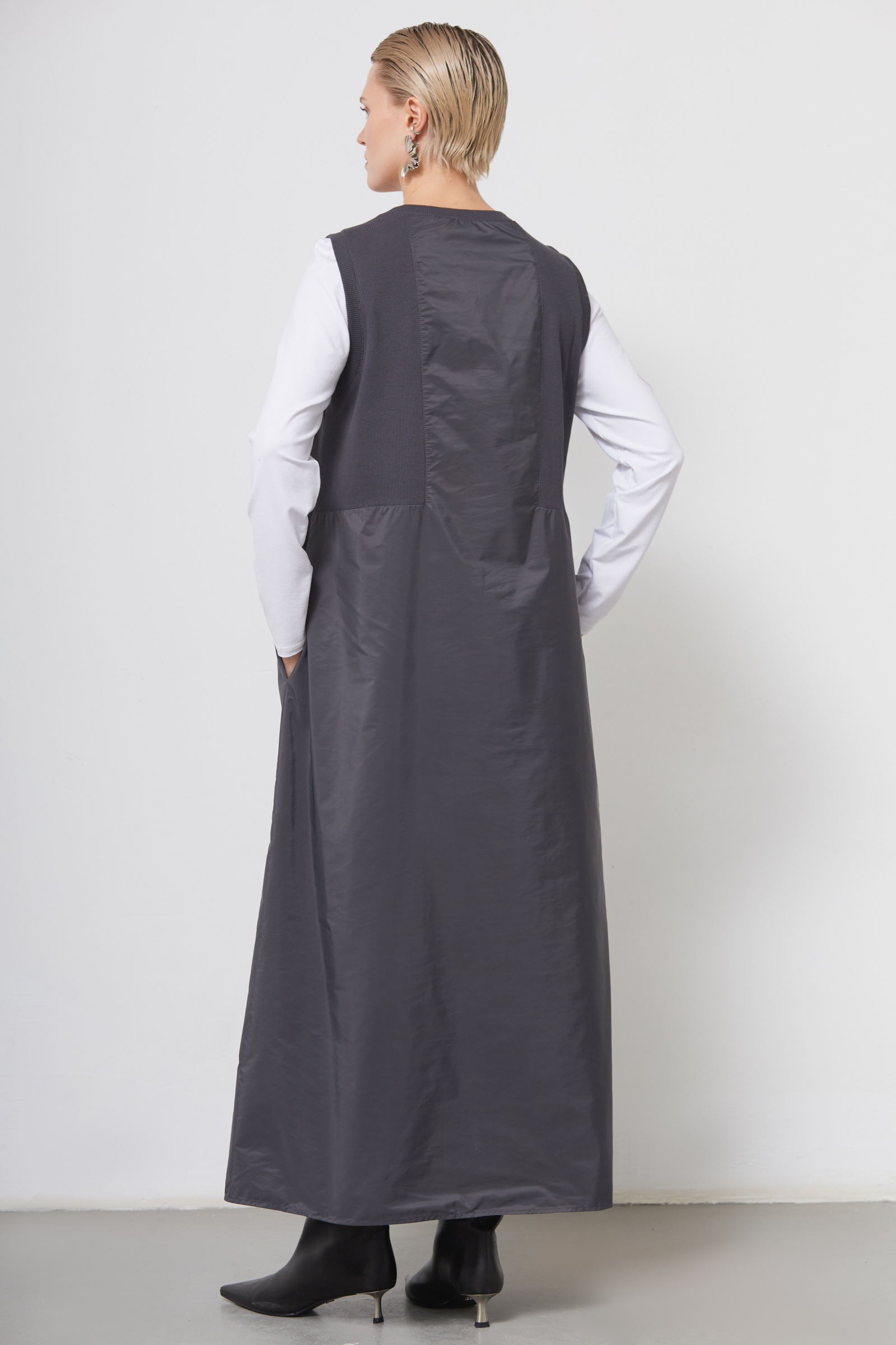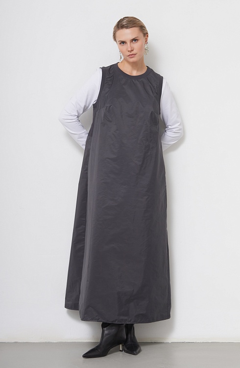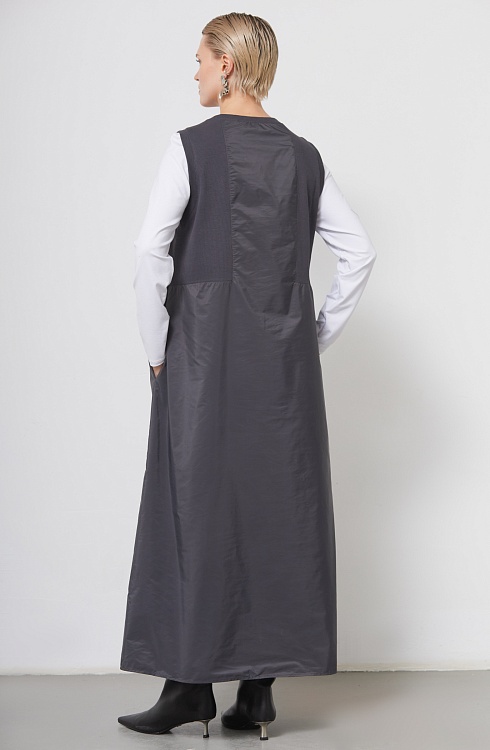 Длинный сарафан из плащевой ткани с трикотажной отделкой.