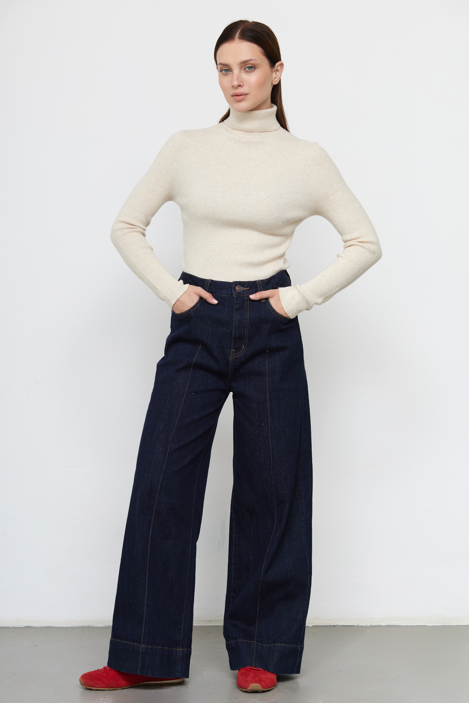 Широкие джинсы из плотного денима со стрелками.