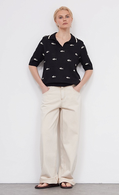 Джемпер-поло жаккардовой вязки