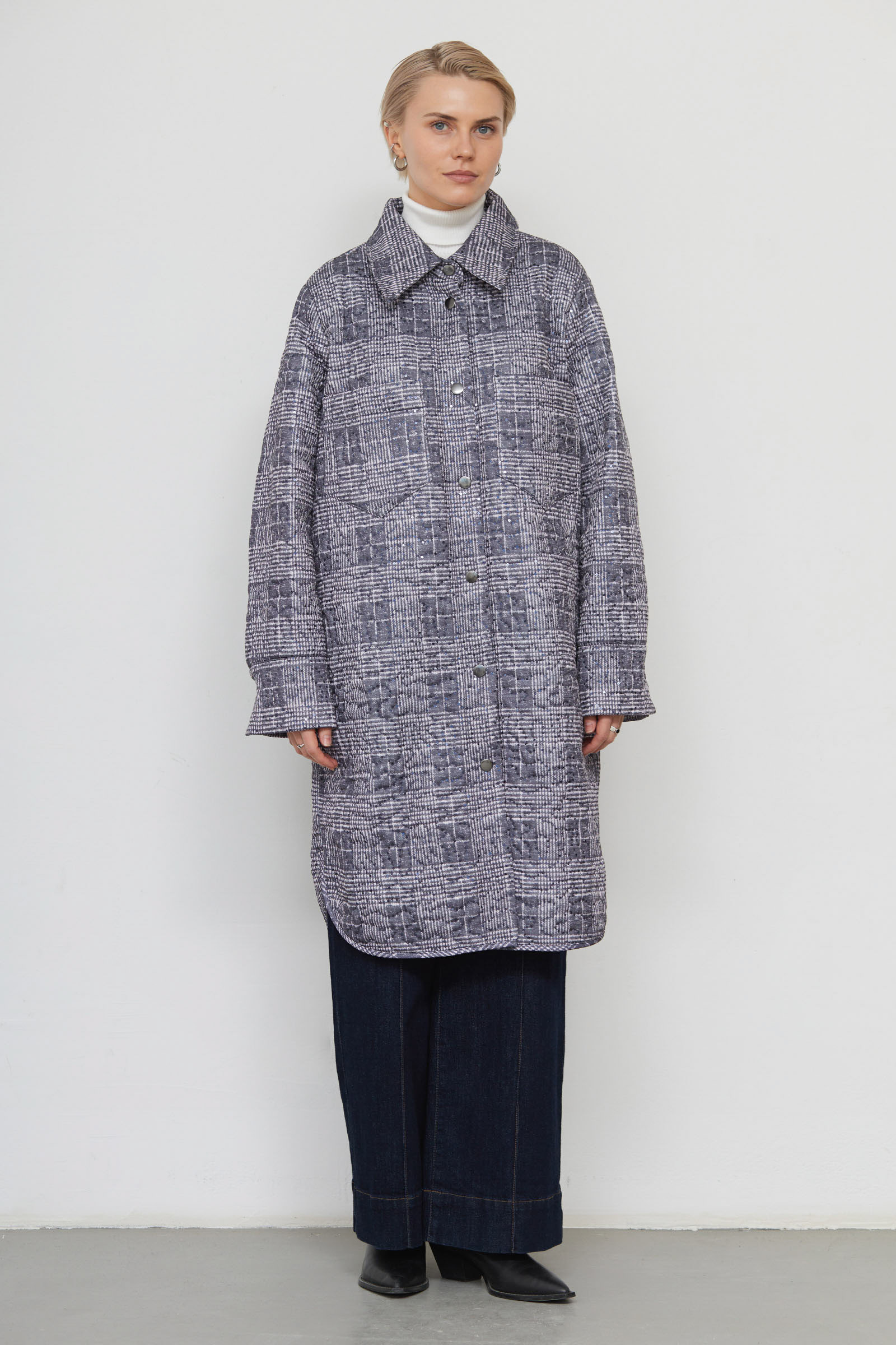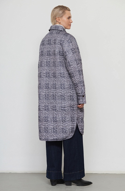Стеганое пальто-рубашка oversize в клетку с пайетками.