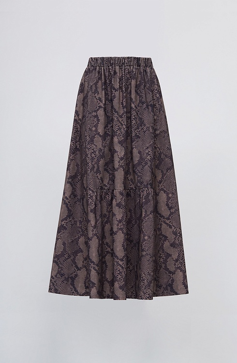 Длинная расклешенная юбка из тонкого вельвета с анималистичным принтом.