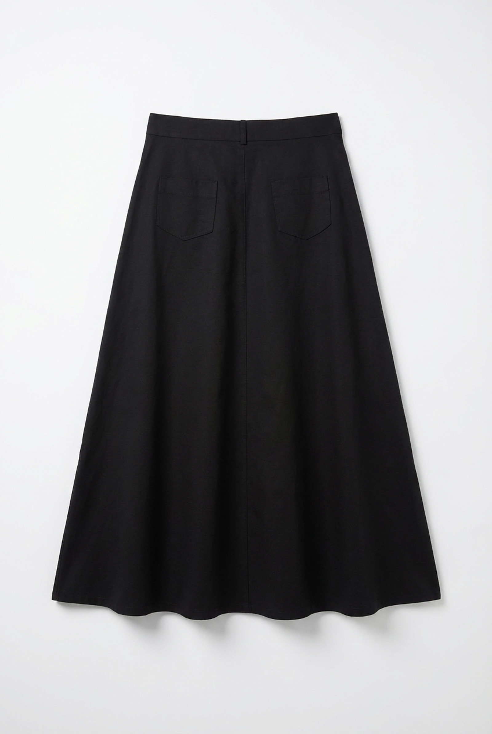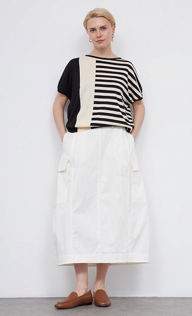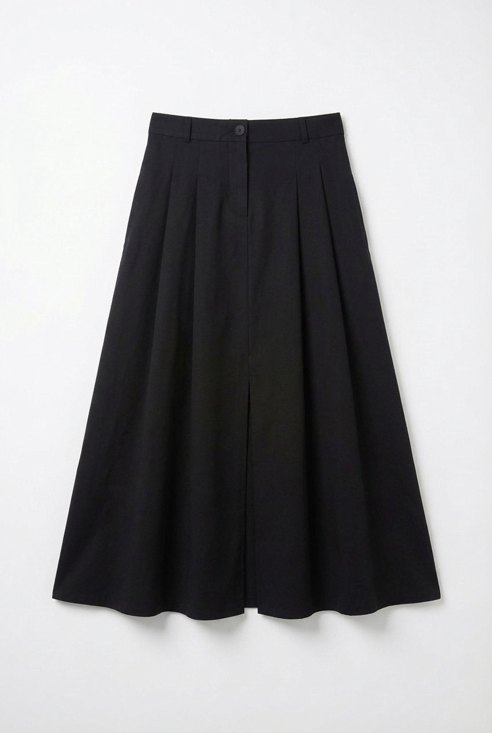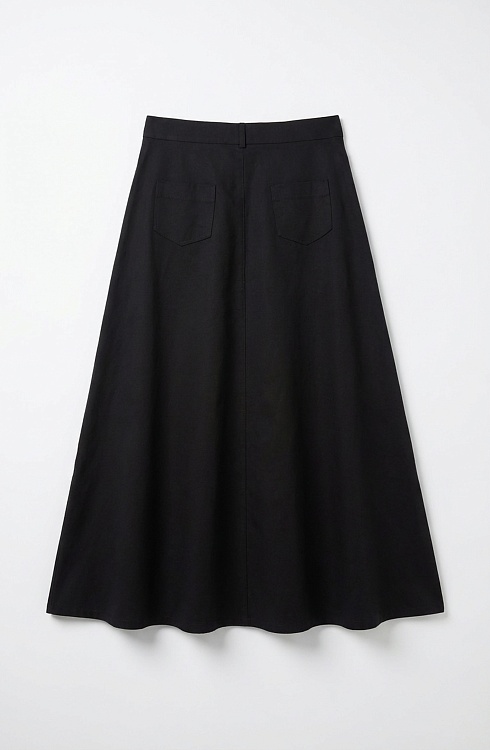 Юбка-клеш из твила с защипами и разрезом спереди.