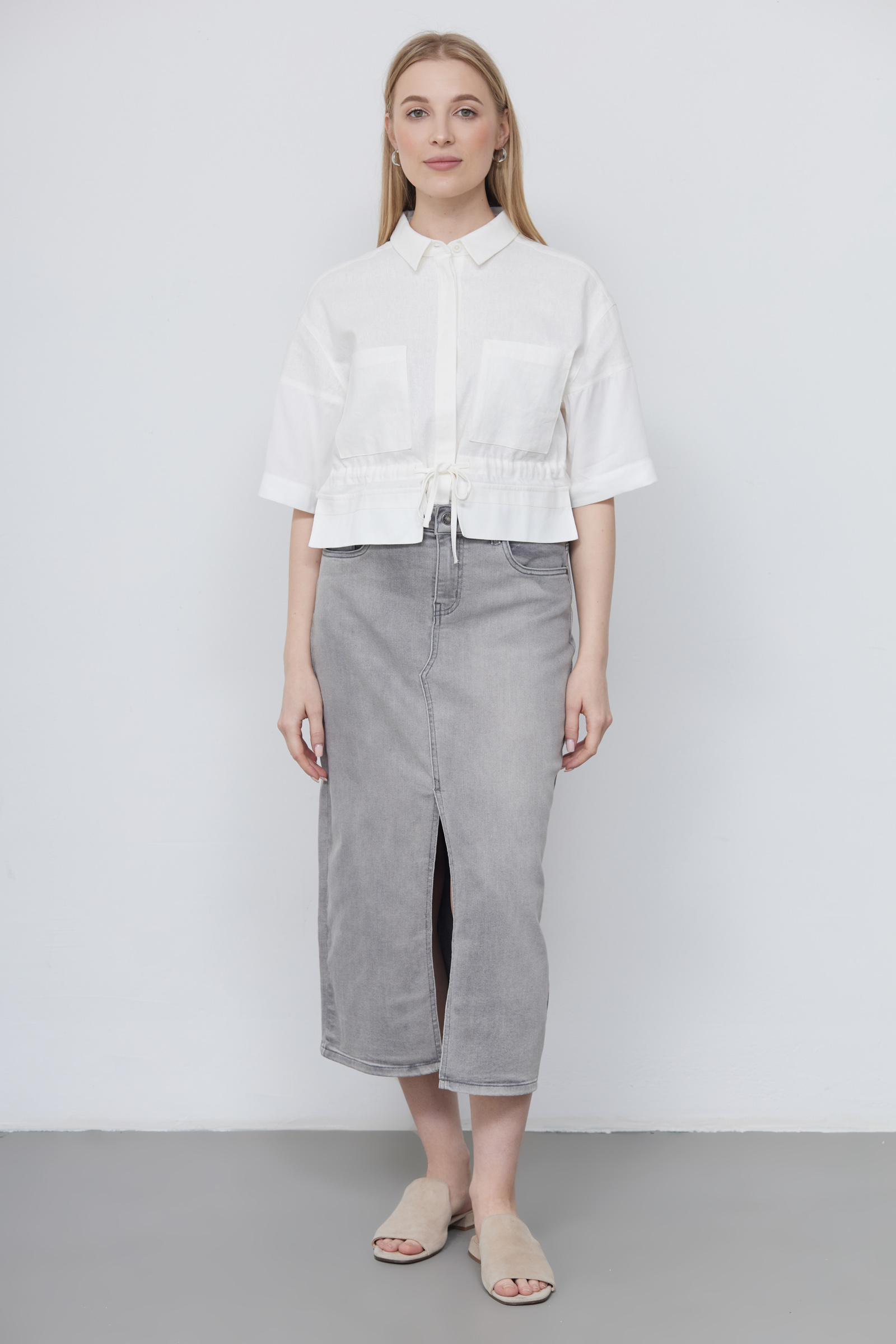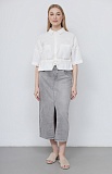 Джинсовая юбка из эластичного денима с глубоким разрезом спереди.