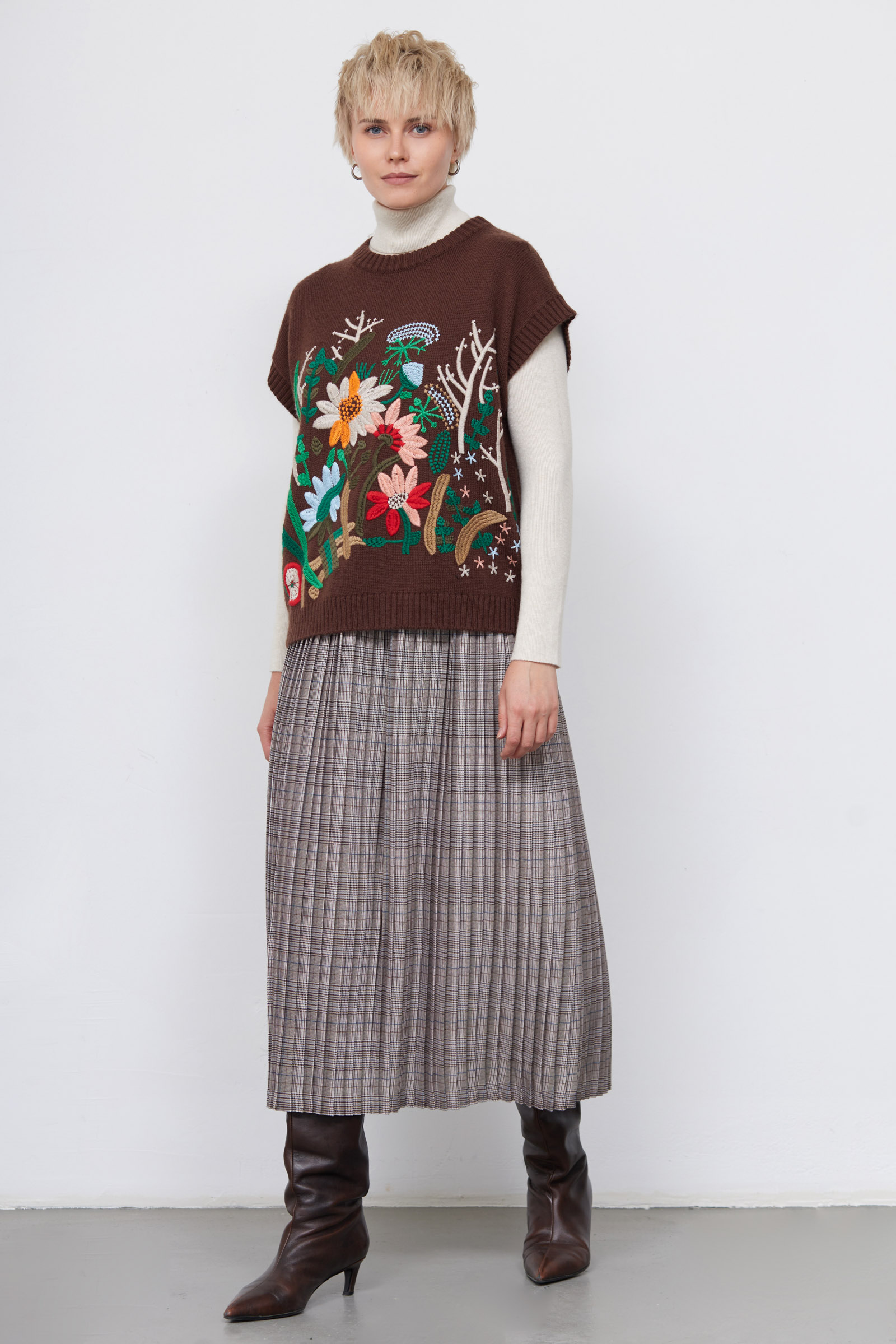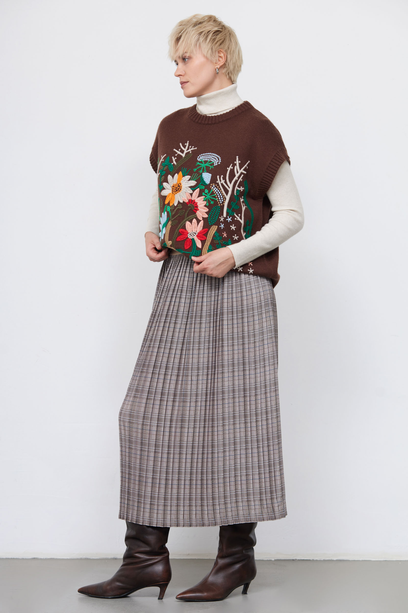 Плиссированная юбка миди в клетку.