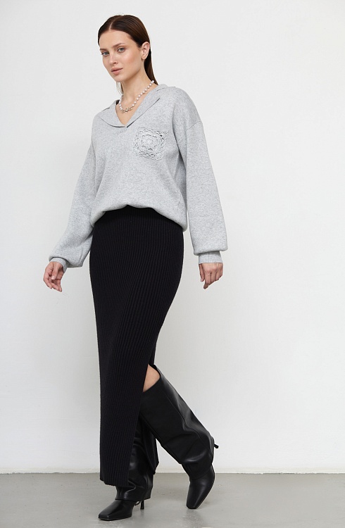 Длинная облегающая юбка из мягкого вязаного трикотажа в рубчик.