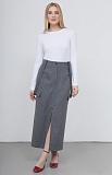 Длинная юбка карго в полоску из смесовой шерсти с разрезом и декоративными лямками.