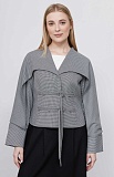 Жакет из поливискозы с принтом "пье-депуль", отлетной кокеткой и декоративными завязками.