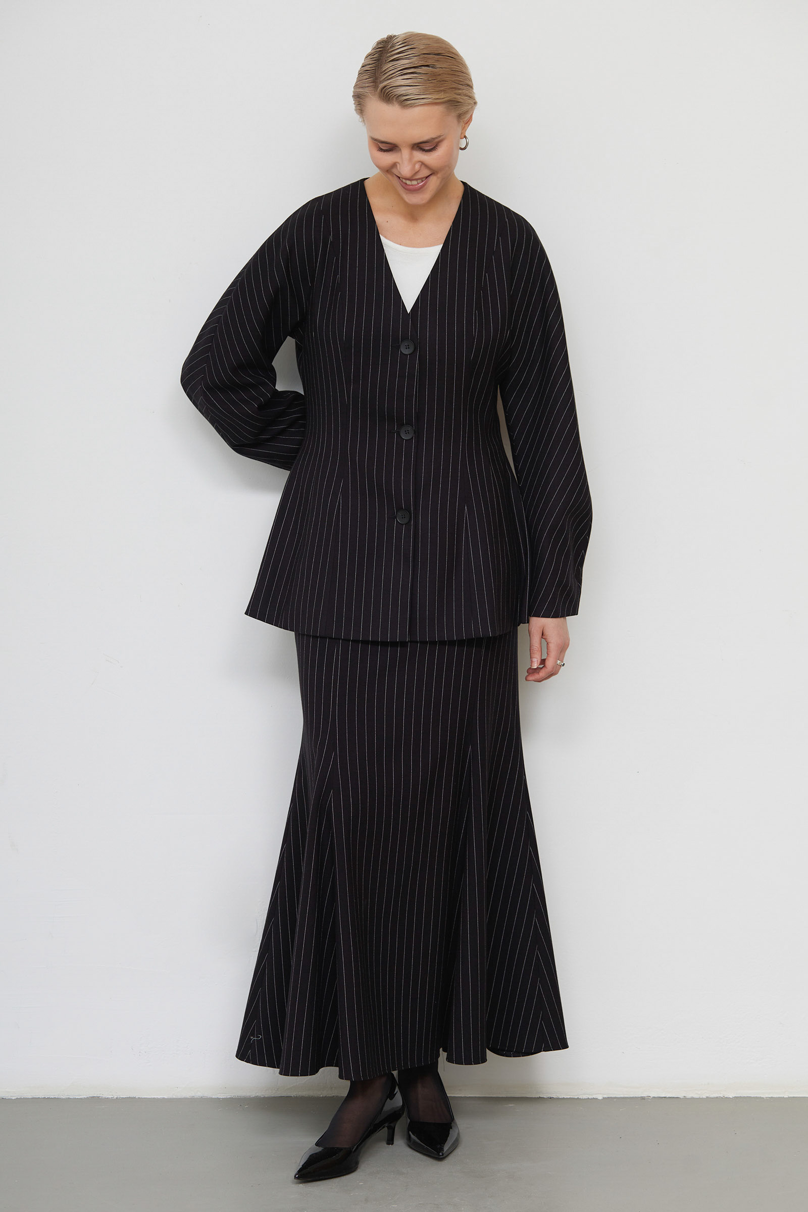 Жакет в полоску с баской