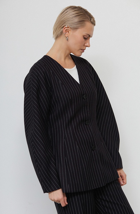 Костюмный жакет из поливискозы в полоску с баской.