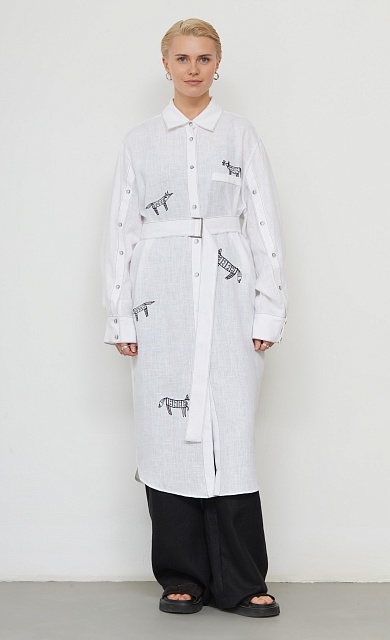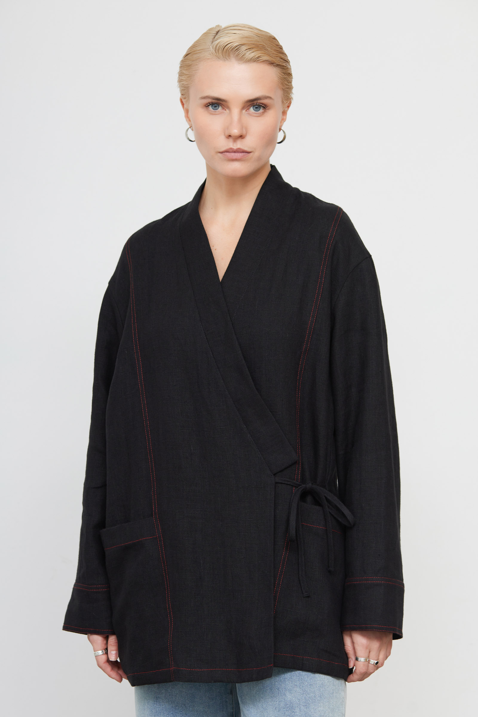 Жакет-кимоно оверсайз изо льна с контрастными отстрочками.