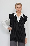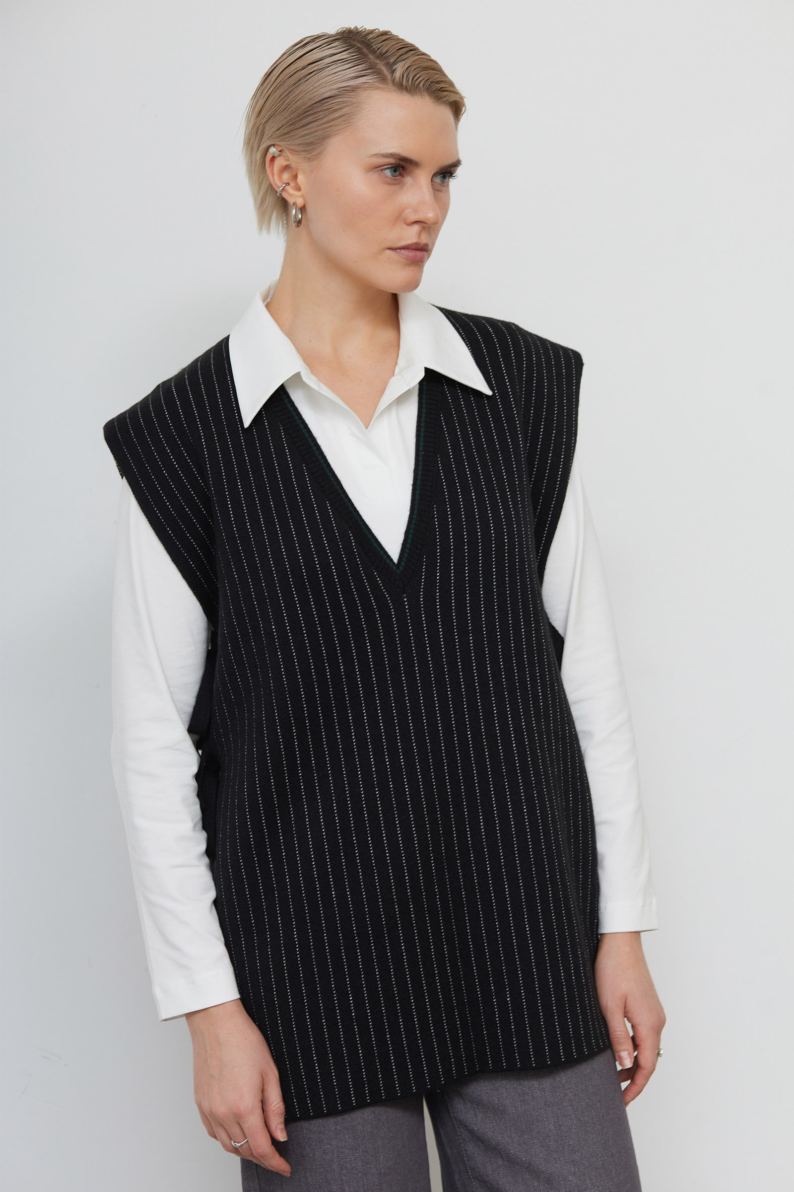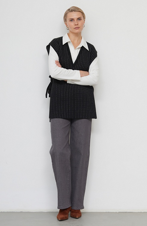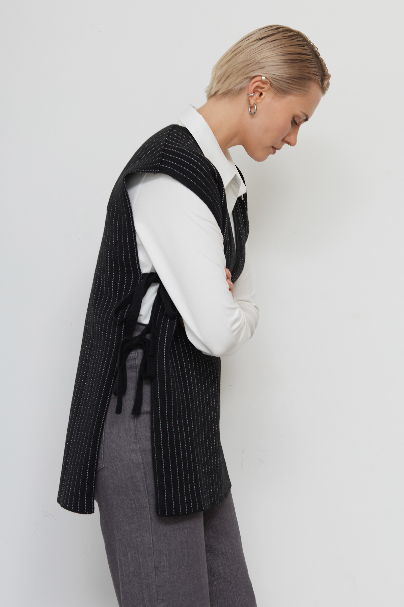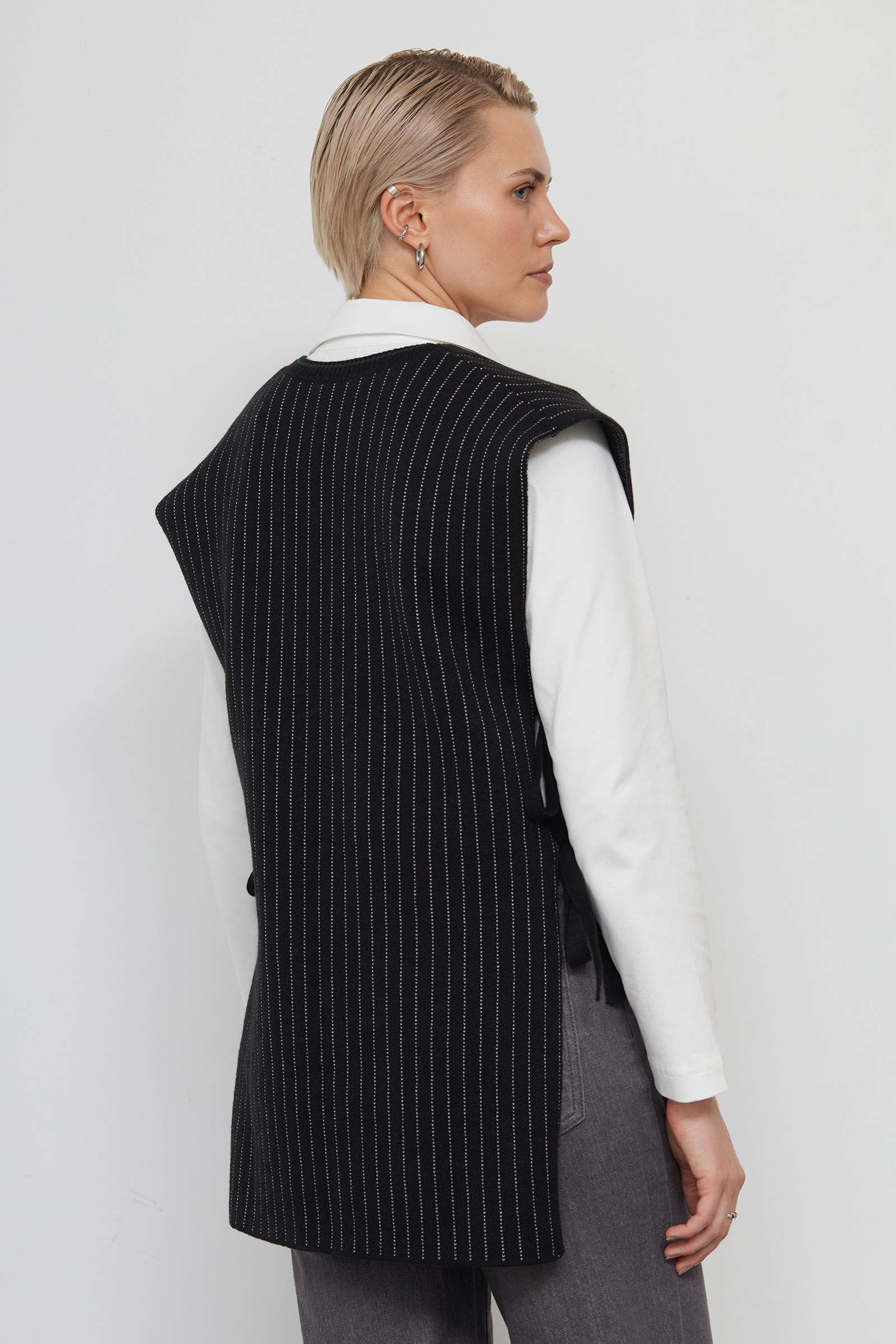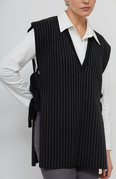Удлиненный жилет oversize жаккардовой вязки в полоску с завязками по бокам.