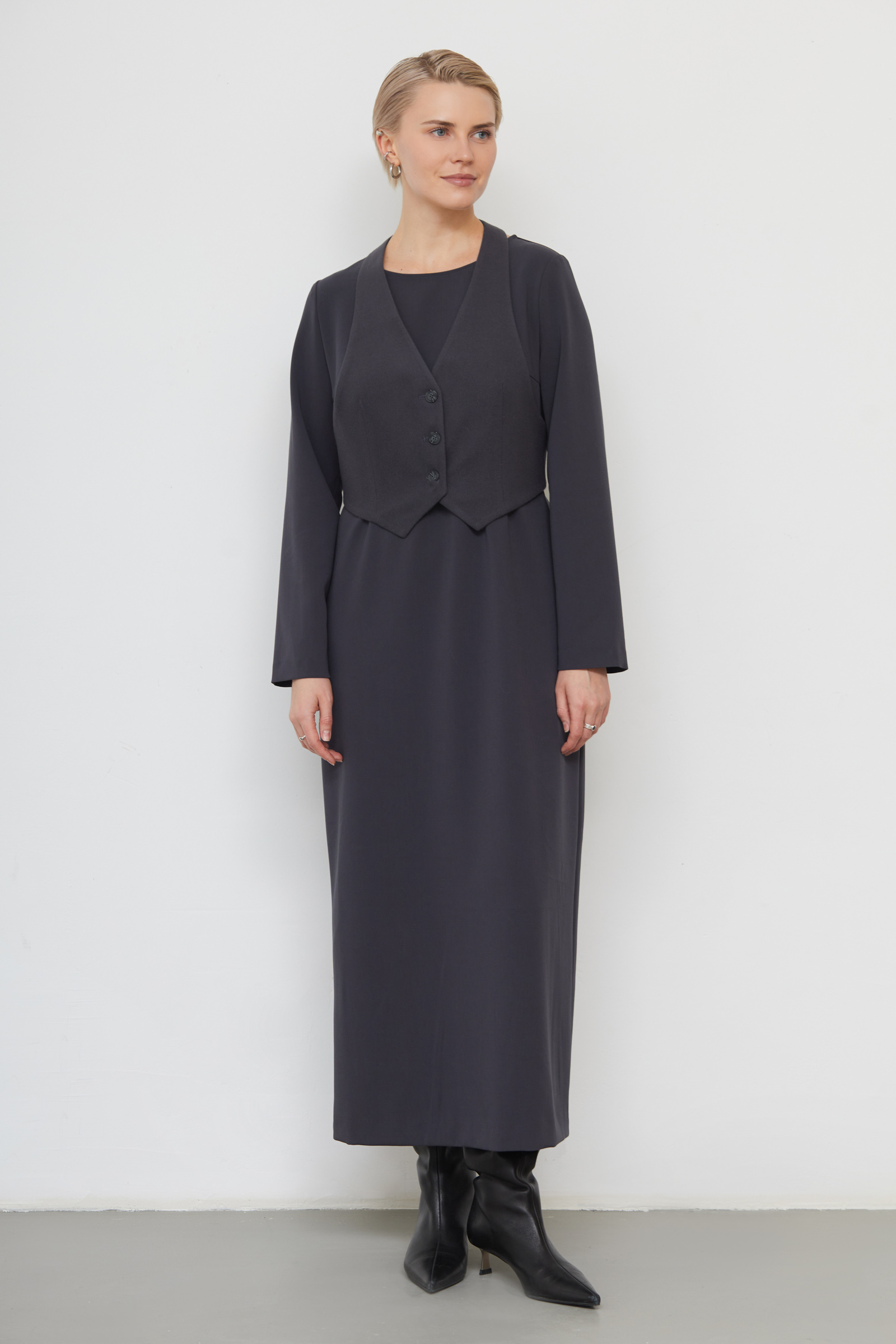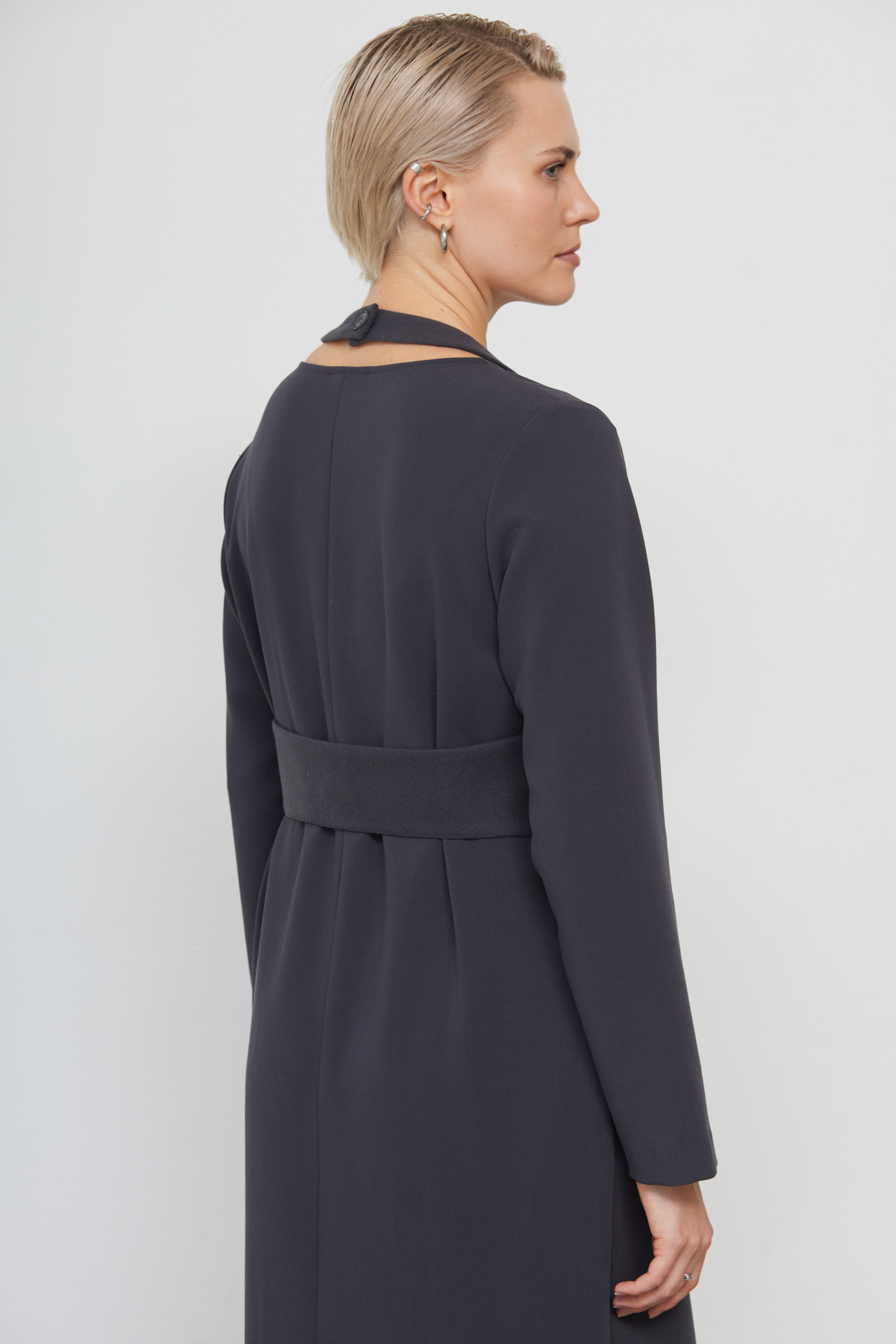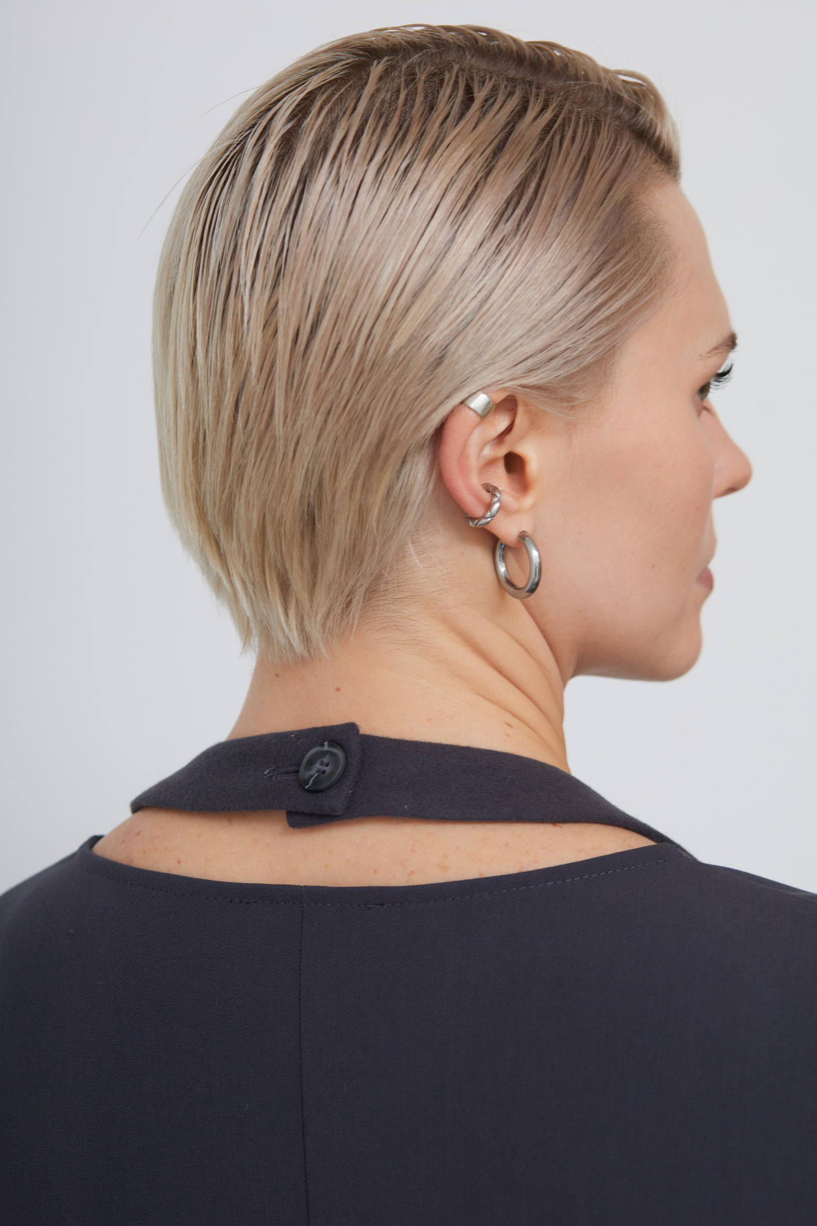 Укороченный жилет из мягкой костюмной ткани с открытой спиной.