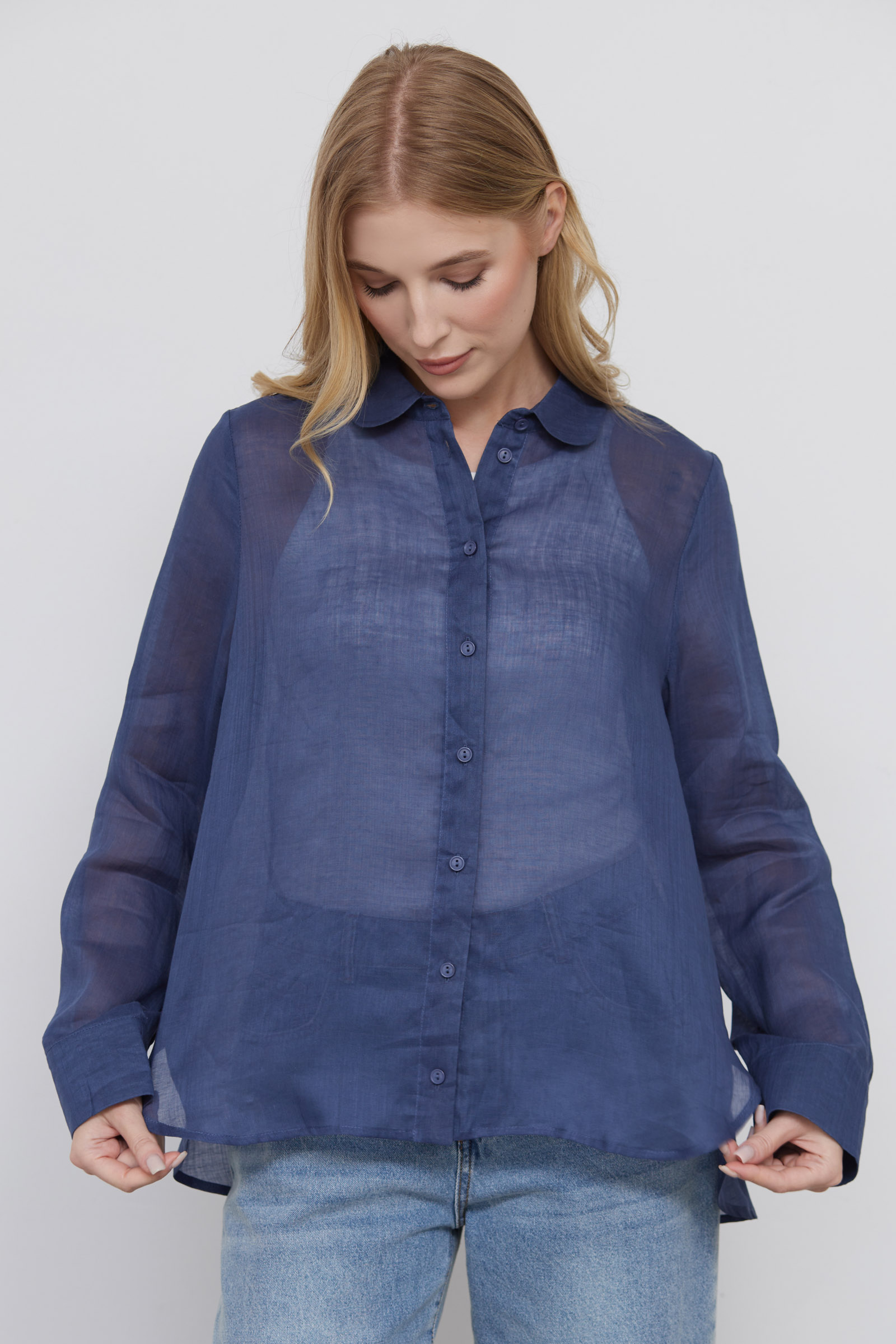 Полупрозрачная блузка oversize из рами с супатной застежкой.