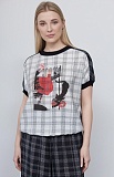 Блуза в клетку с печатью