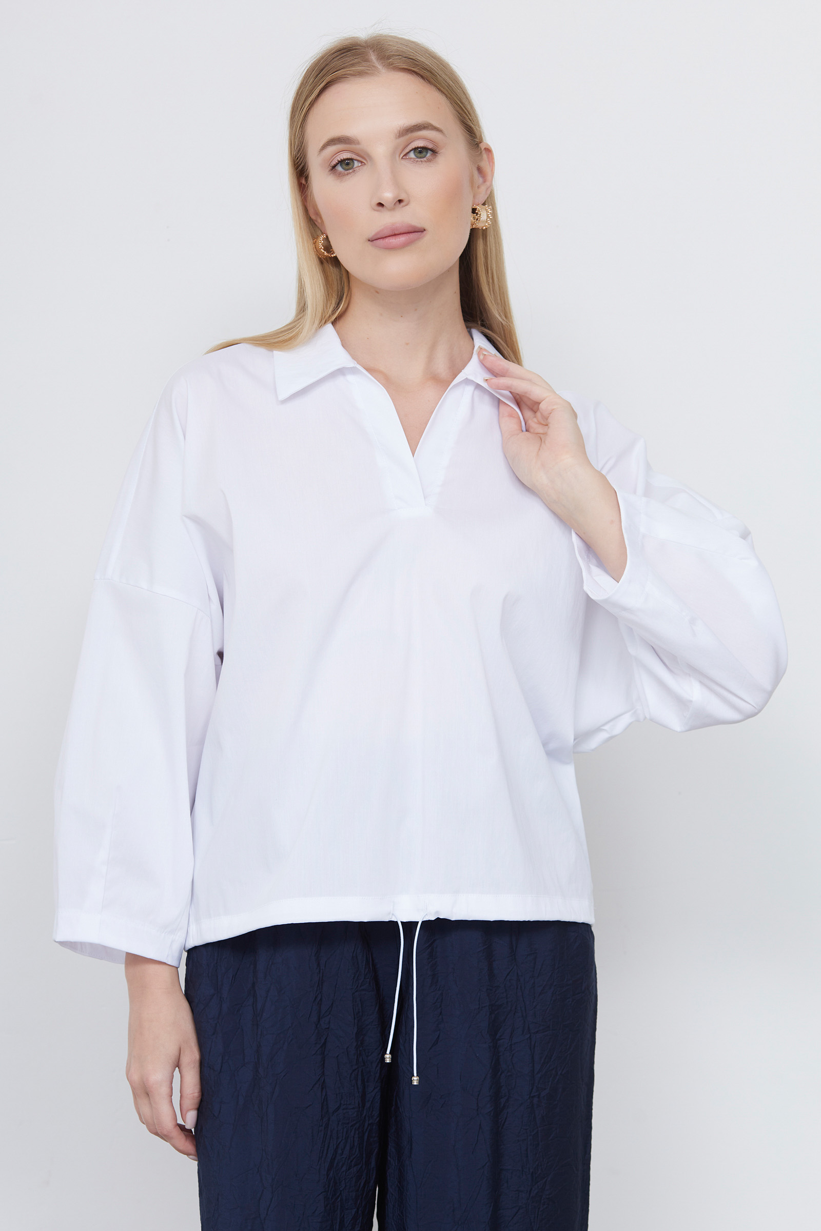 Блузка oversize из эластичного хлопкового текстиля с кулиской по низу.