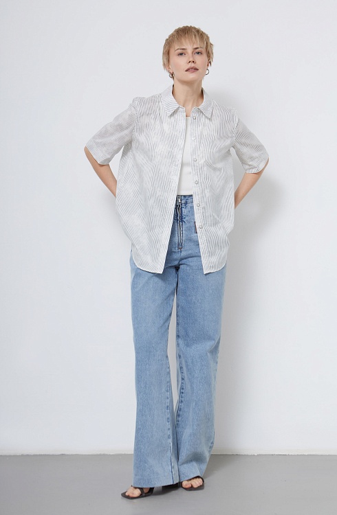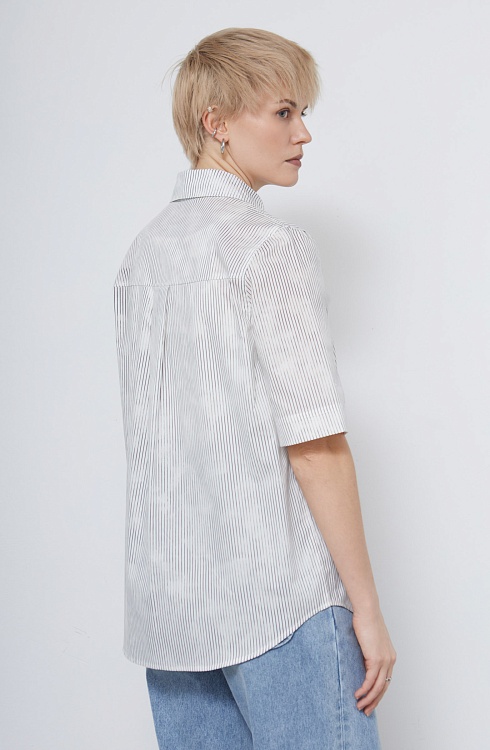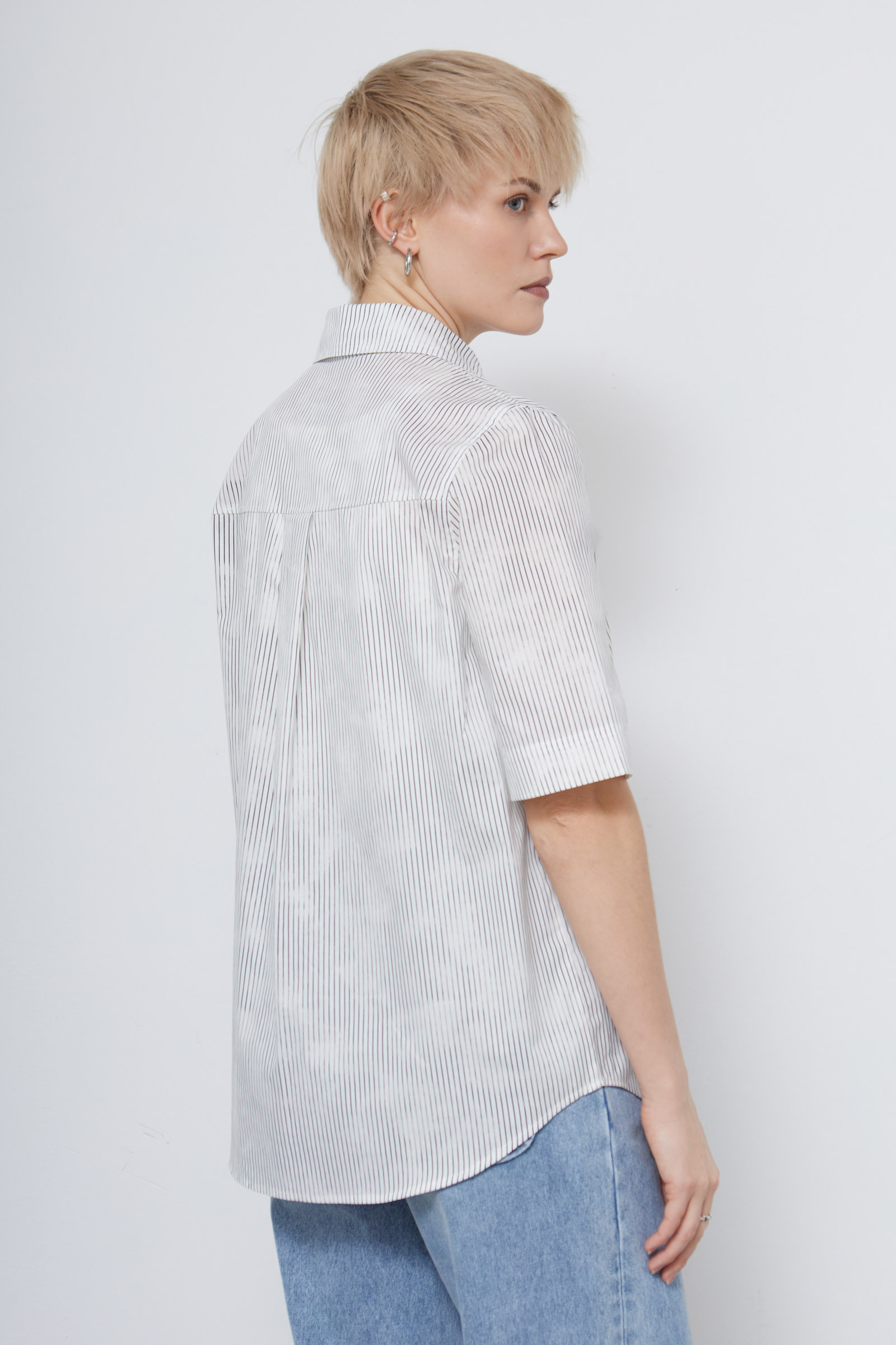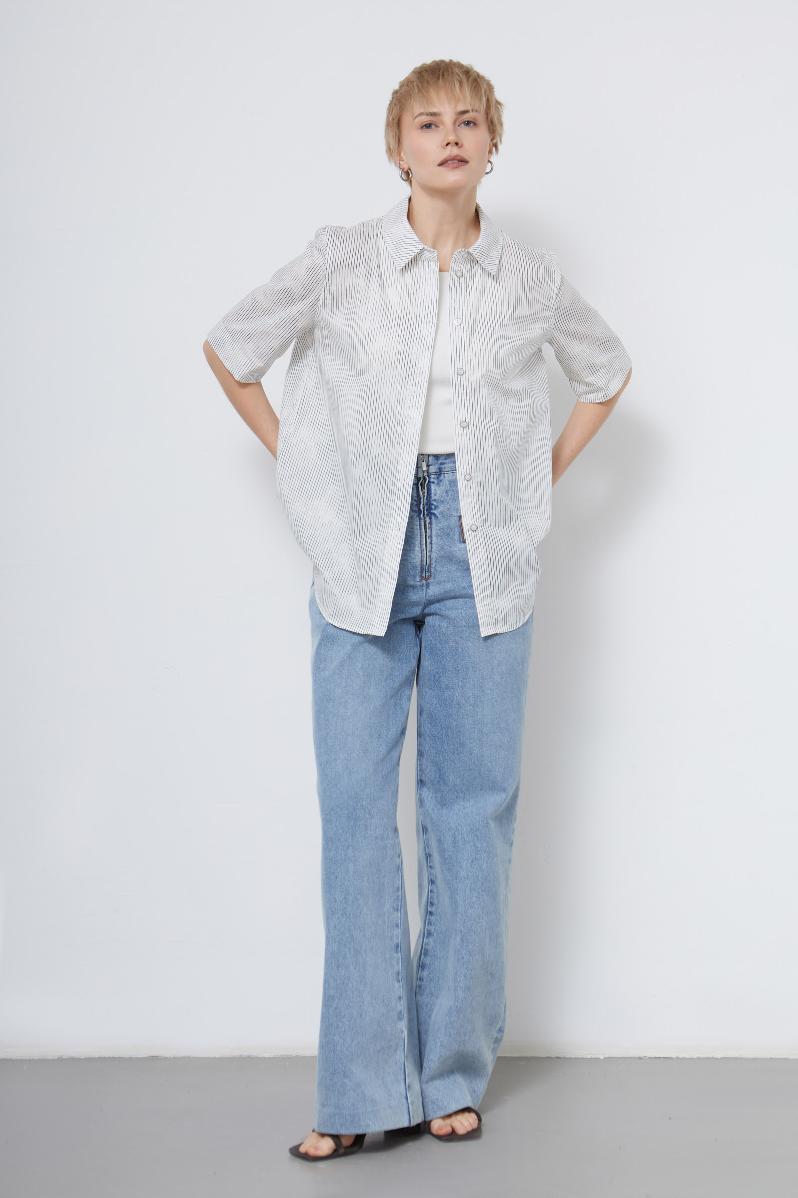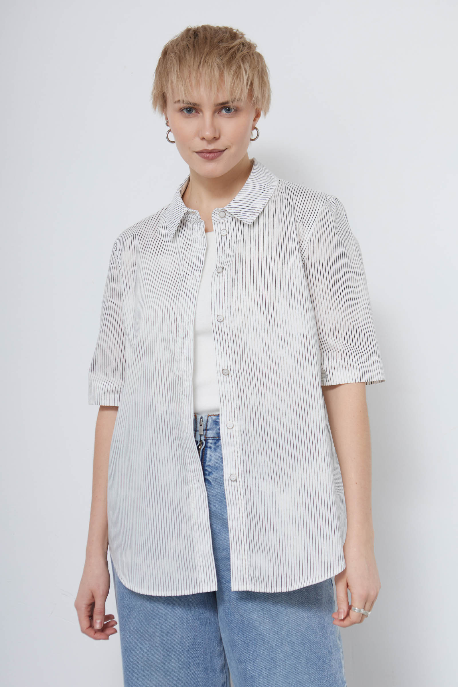 Рубашка oversize из хлопка в полоску с винтажным эффектом и короткими рукавами.