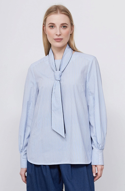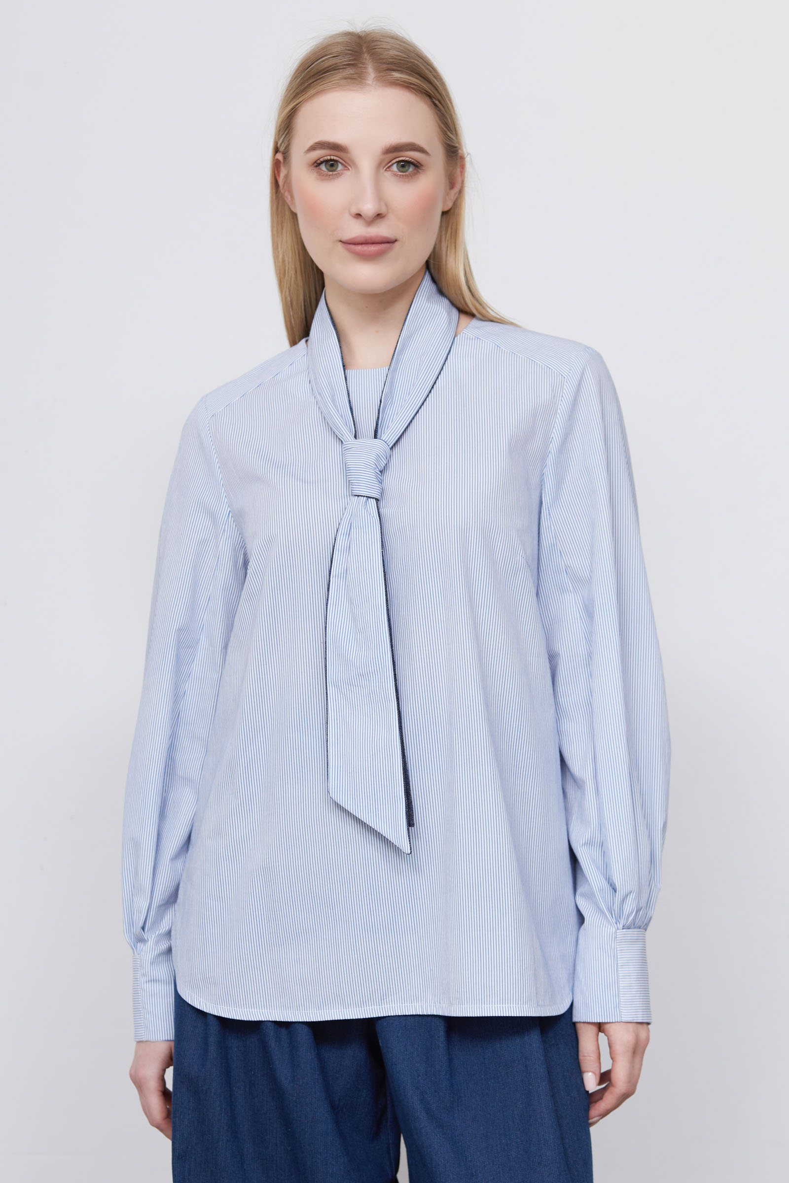 Блузка oversize из хлопка в полоску с галстуком в комплекте.