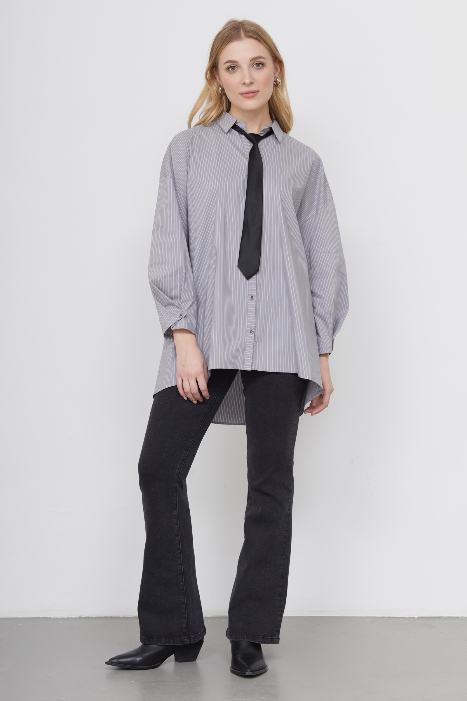 Удлиненная блузка оверсайз из хлопка в полоску.