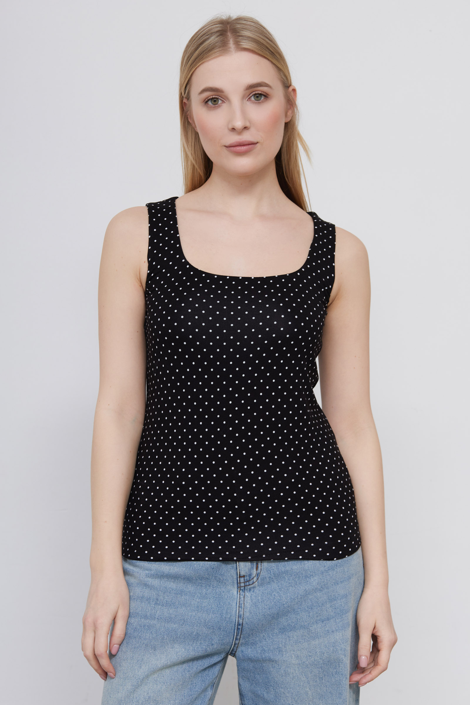Облегающий топ из мягкого вискозного трикотажа в горошек.
