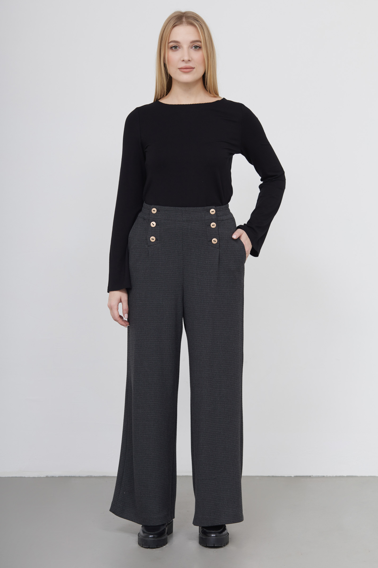 Широкие брюки из мягкой костюмной ткани с двойной застежкой.